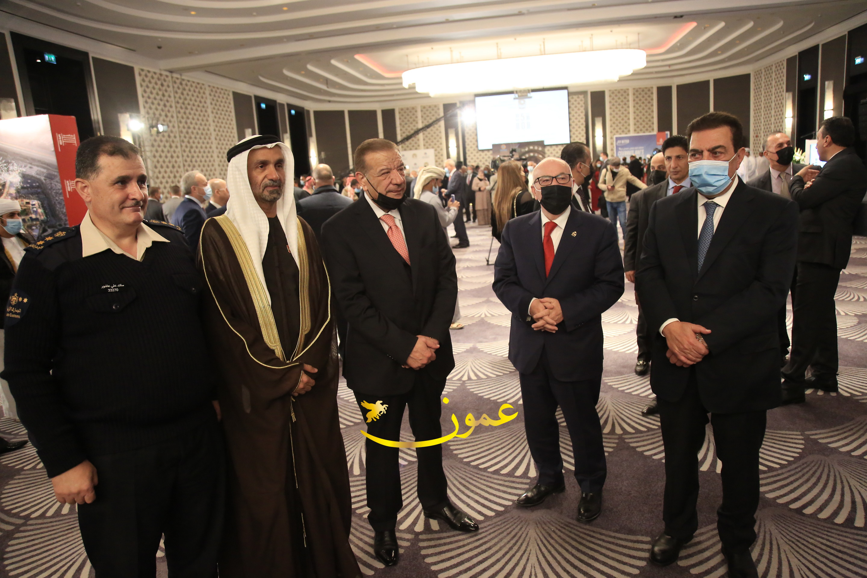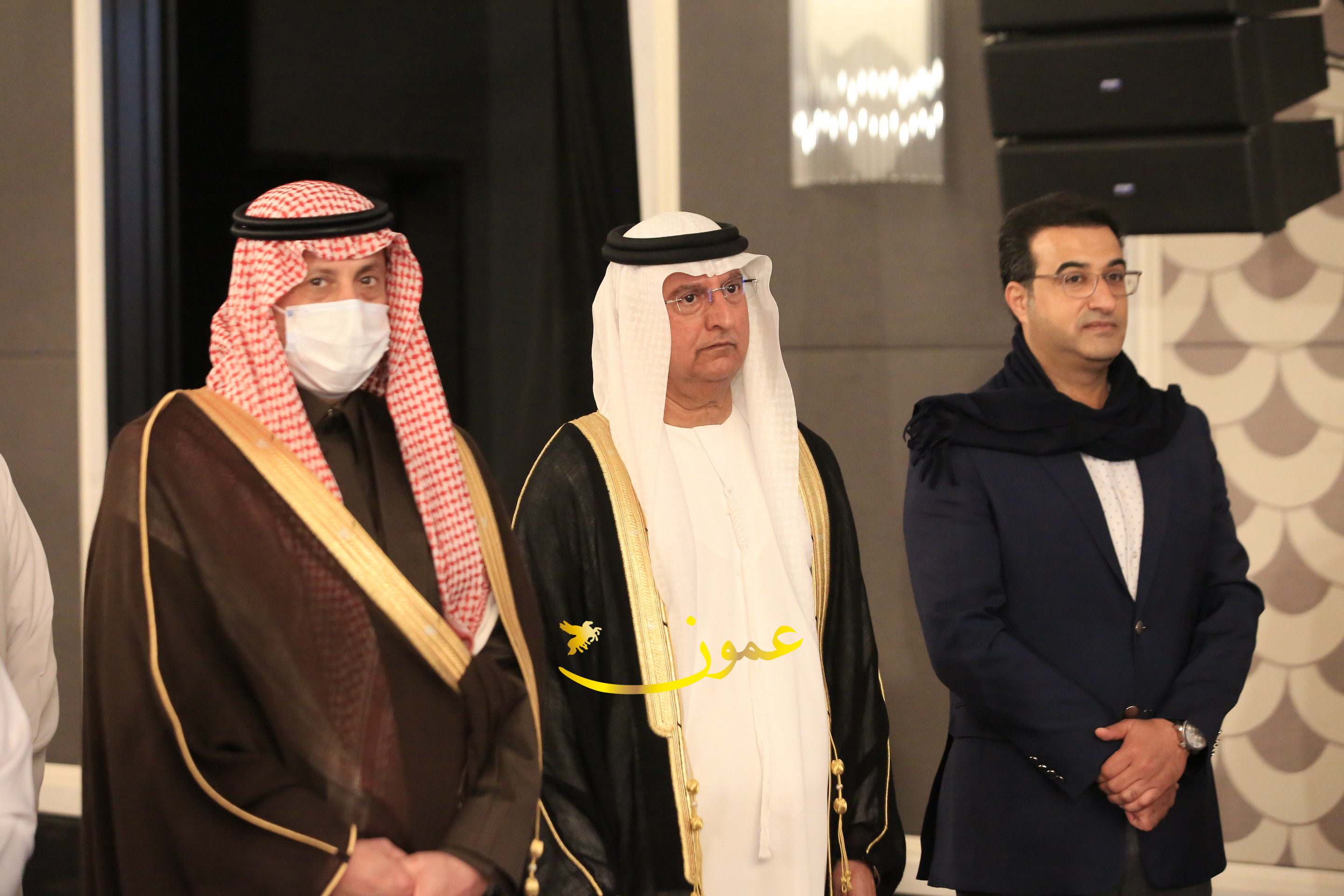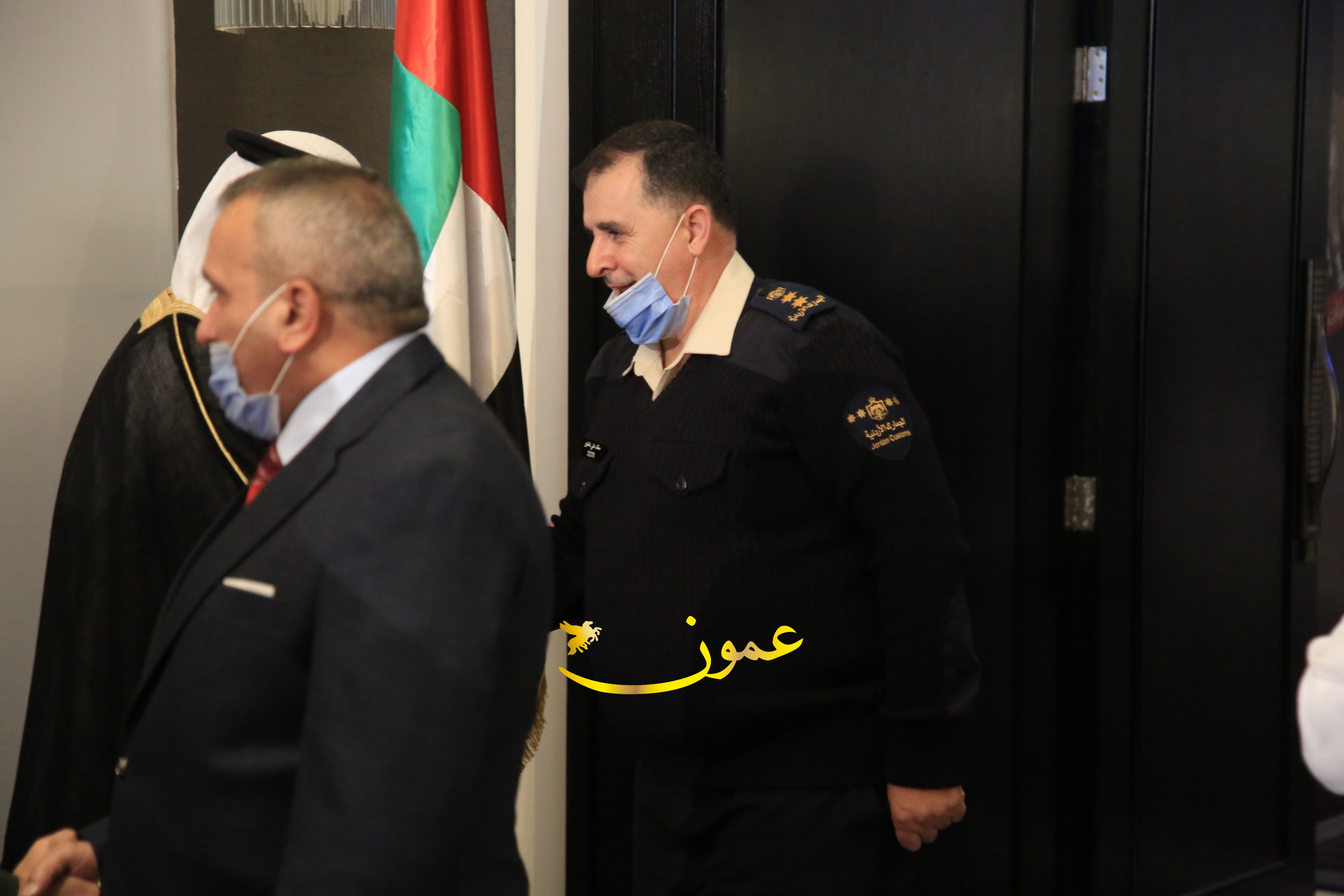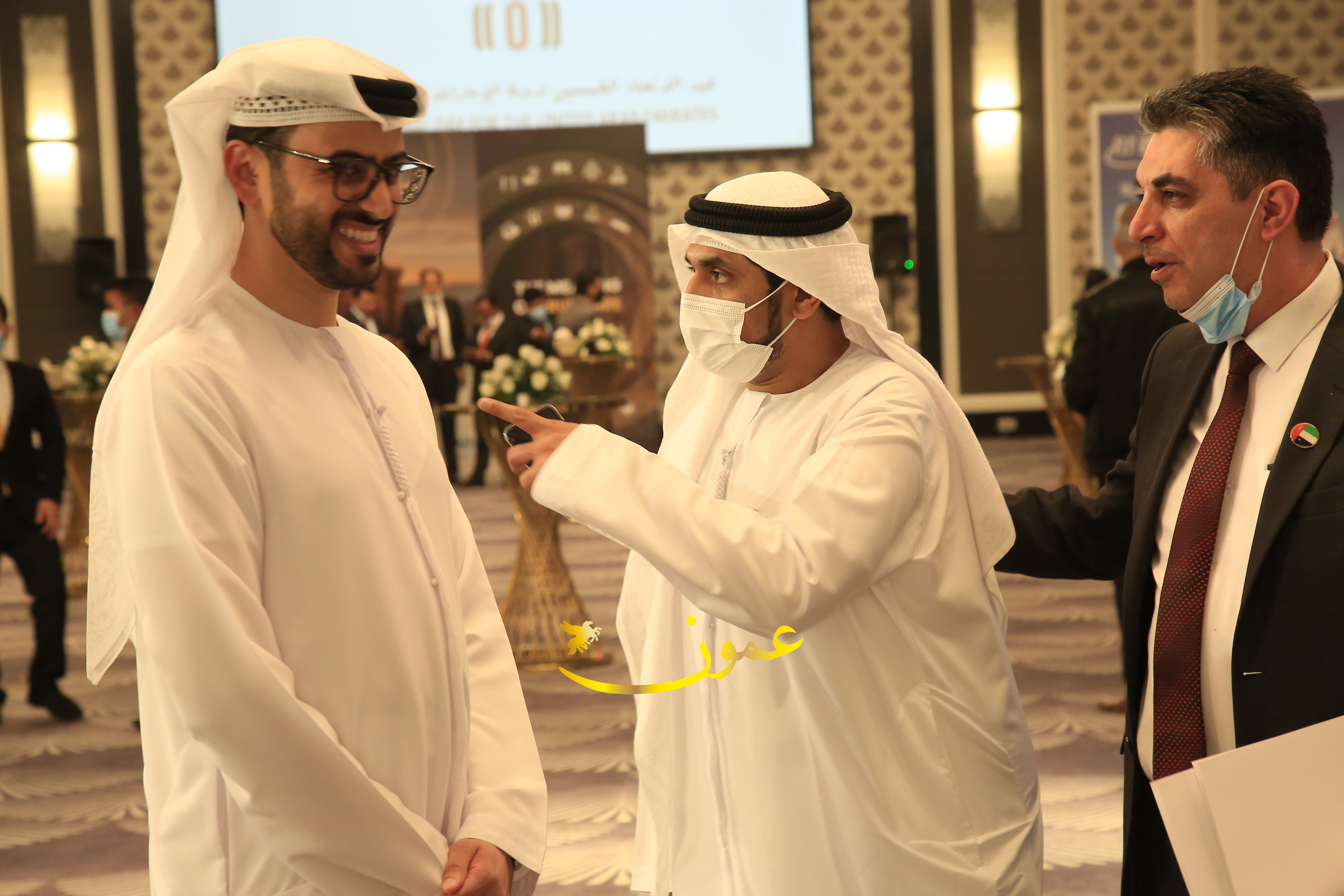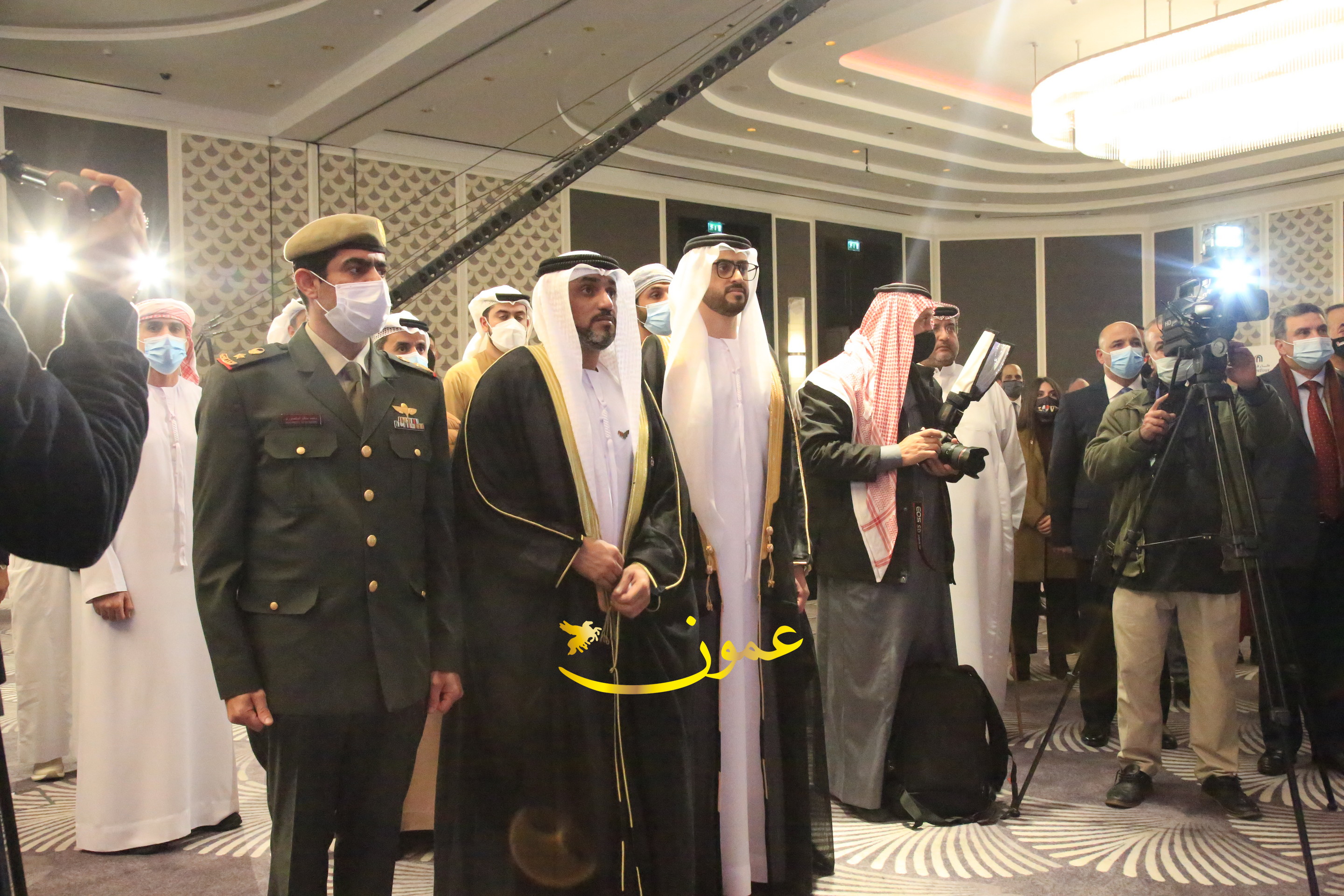 عمون - بمناسبة عيد الاتحاد الخمسين لدولة الإمارات العربية المتحدة، استقبل سفير دولة الإمارات العربية المتحدة لدى المملكة الأردنية الهاشمية أحمد علي البلوشي مساء الأربعاء في الإحتفال الذي أقامته السفارة الإماراتية بالعاصمة الأردنية عمّان، كبار المسؤولين الأردنيين يتقدمهم رئيس مجلس الأعيان فيصل الفايز، ورئيس مجلس النواب عبدالكريم الدغمي، ورئيس الديوان الملكي يوسف العيسوي، وعدد من أصحاب المعالي والسعادة: الوزراء والأعيان والنواب وكبار رجال السلك الدبلوماسي والعسكري والقضائي ورؤساء البعثات الدبلوماسية العربية والأجنبية وشخصيات سياسية واقتصادية وثقافية وإعلامية ومسؤولي مؤسسات المجتمع المدني والمنظمات الدولية، إضافة إلى شيوخ العشائر من مختلف محافظات المملكة.