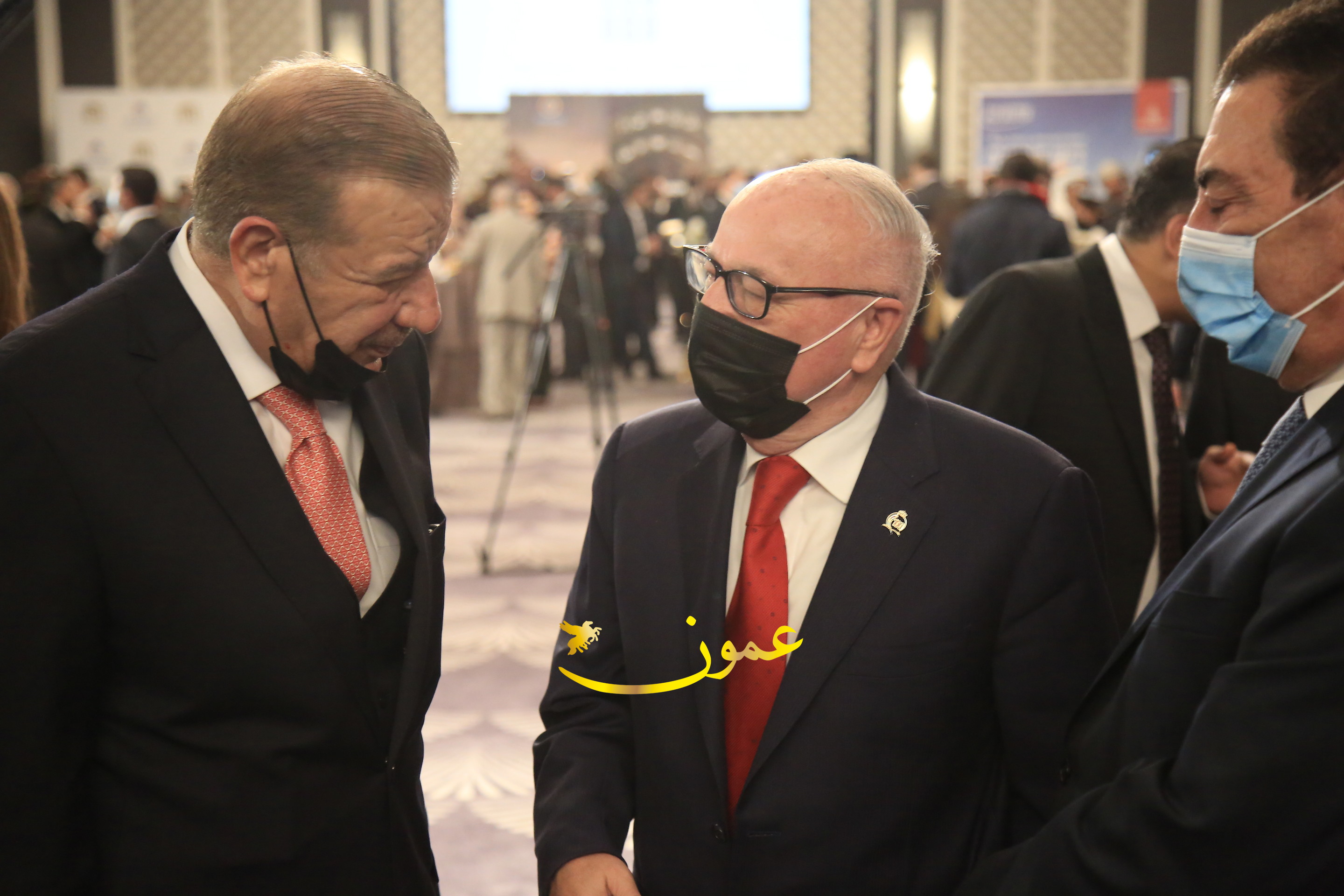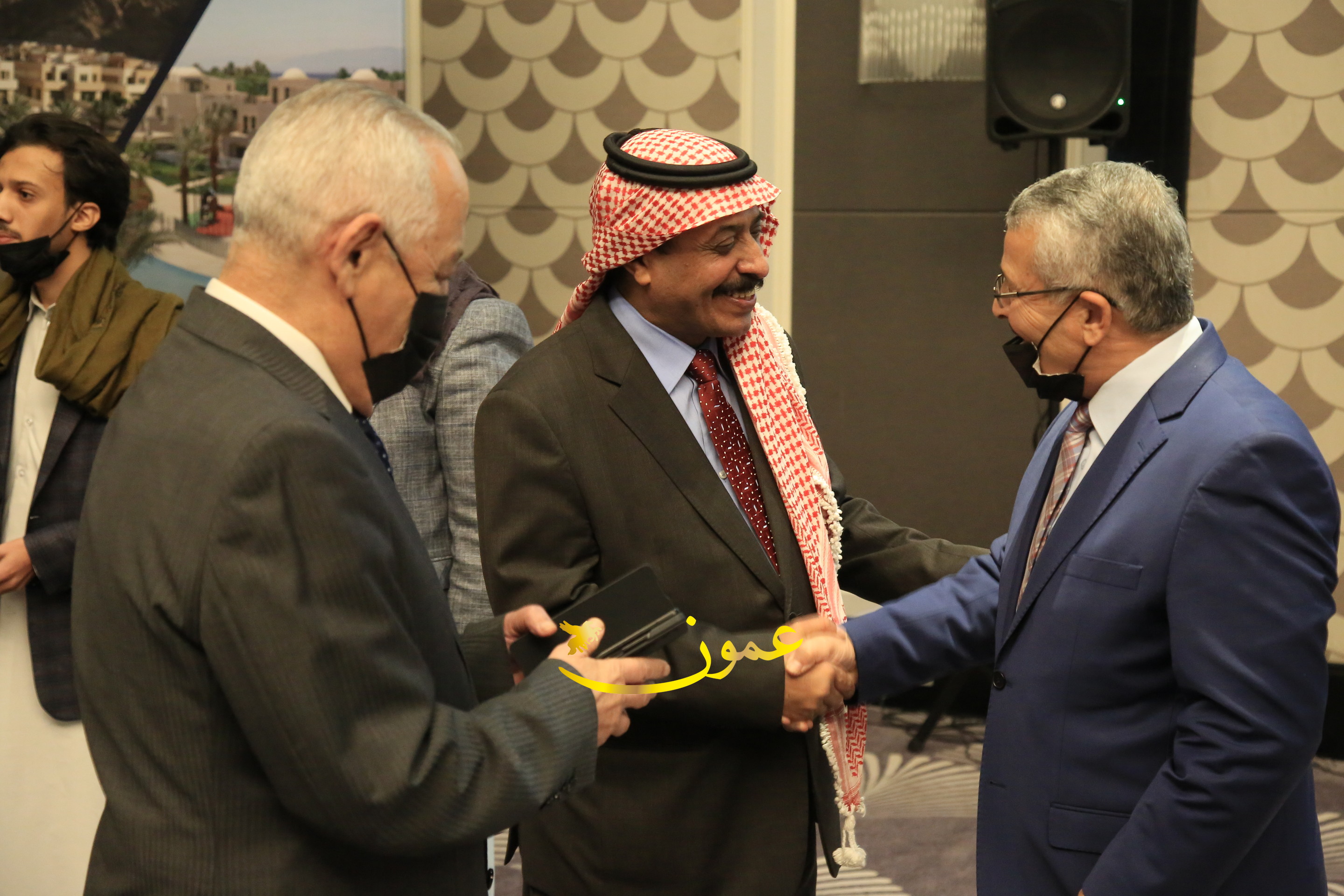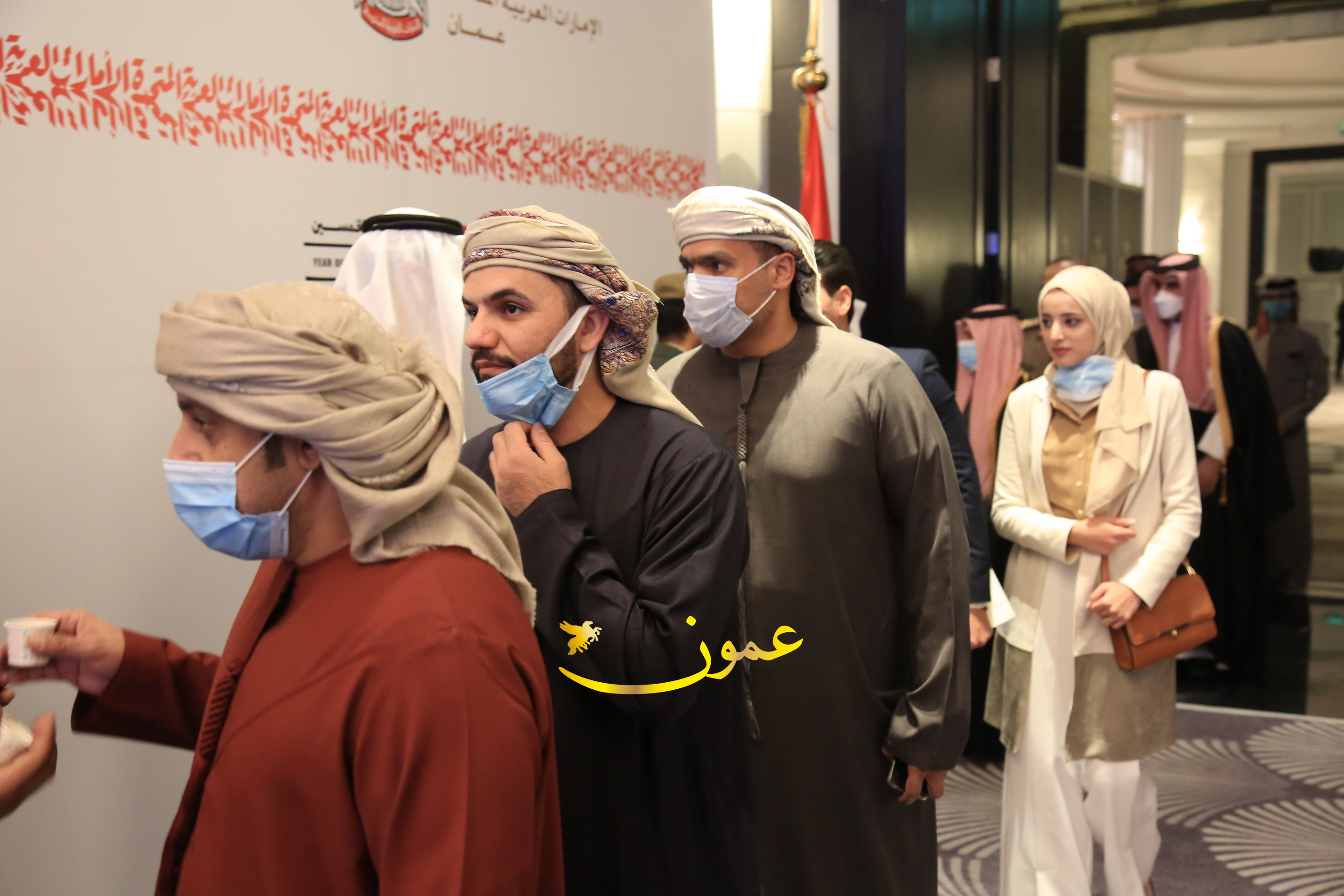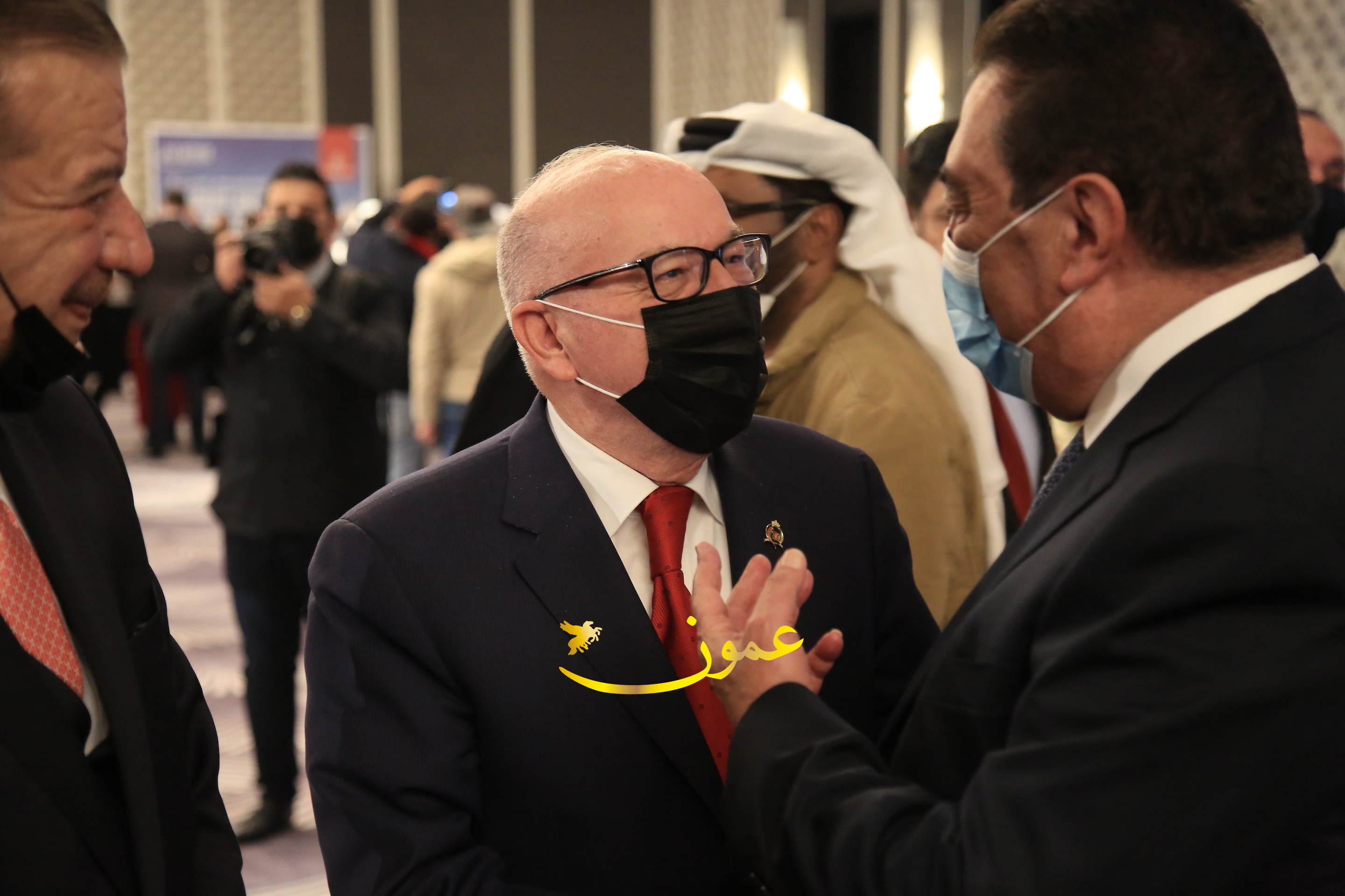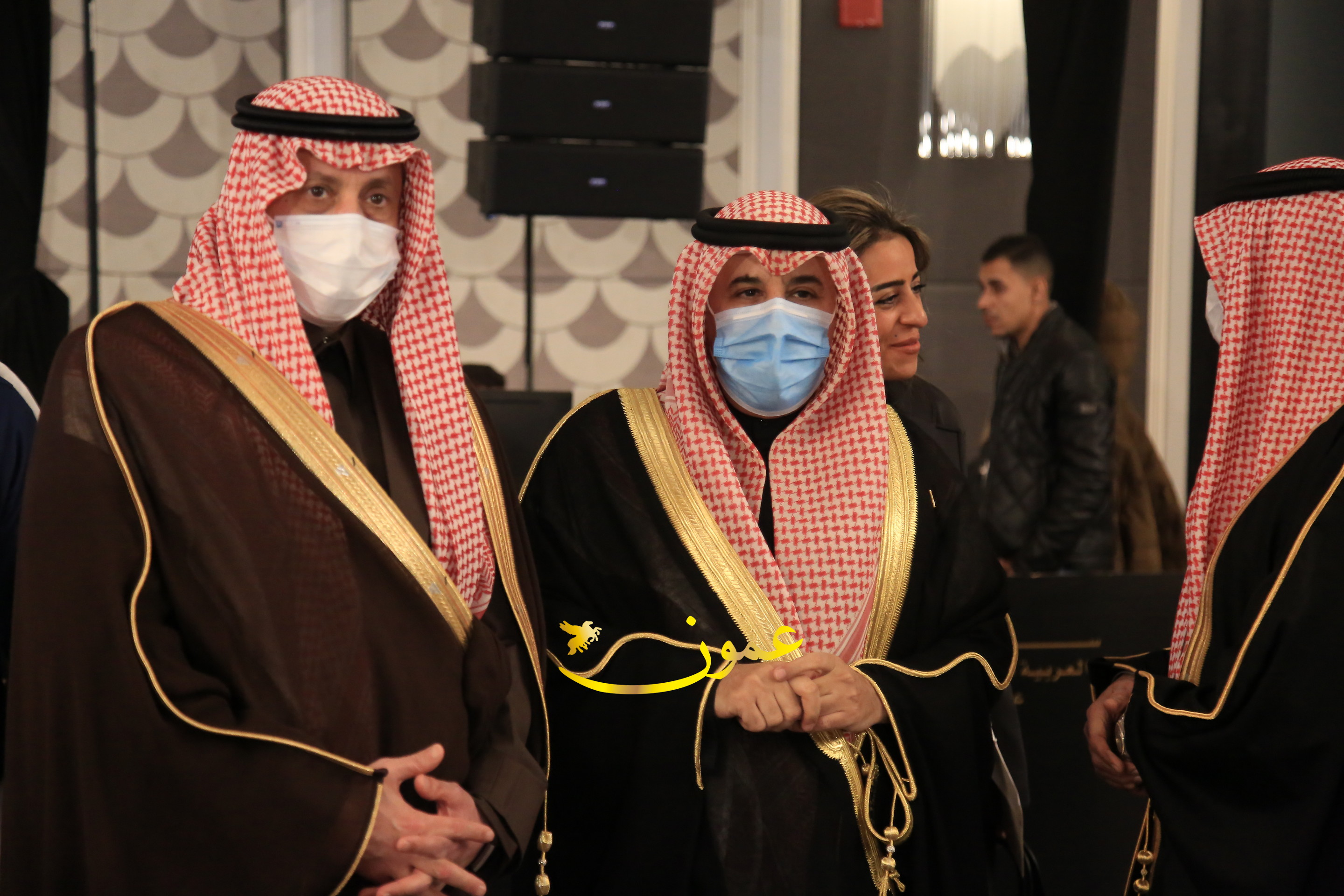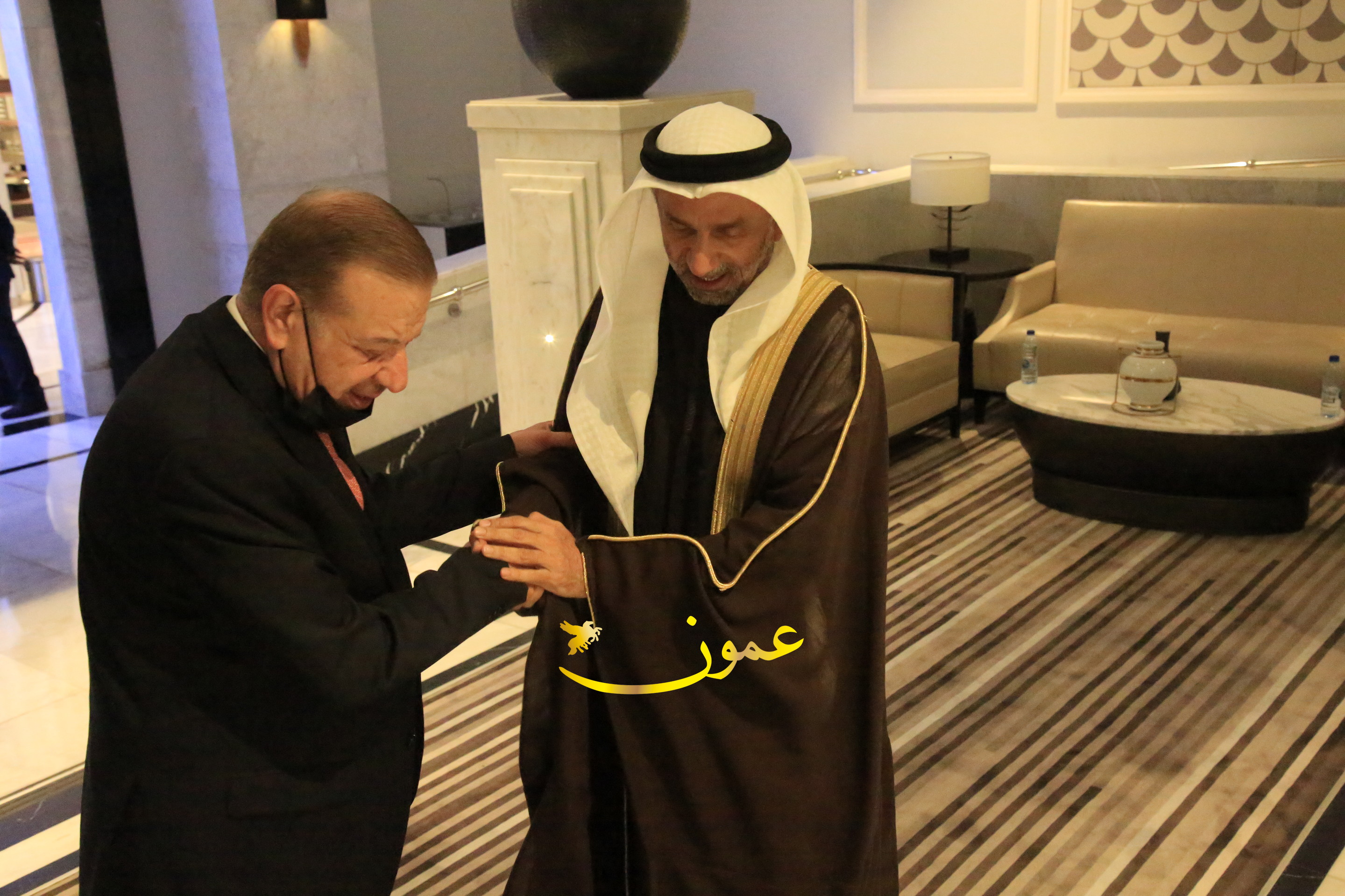 عمون - بمناسبة عيد الاتحاد الخمسين لدولة الإمارات العربية المتحدة، استقبل سفير دولة الإمارات العربية المتحدة لدى المملكة الأردنية الهاشمية أحمد علي البلوشي مساء الأربعاء في الإحتفال الذي أقامته السفارة الإماراتية بالعاصمة الأردنية عمّان، كبار المسؤولين الأردنيين يتقدمهم رئيس مجلس الأعيان فيصل الفايز، ورئيس مجلس النواب عبدالكريم الدغمي، ورئيس الديوان الملكي يوسف العيسوي، وعدد من أصحاب المعالي والسعادة: الوزراء والأعيان والنواب وكبار رجال السلك الدبلوماسي والعسكري والقضائي ورؤساء البعثات الدبلوماسية العربية والأجنبية وشخصيات سياسية واقتصادية وثقافية وإعلامية ومسؤولي مؤسسات المجتمع المدني والمنظمات الدولية، إضافة إلى شيوخ العشائر من مختلف محافظات المملكة.