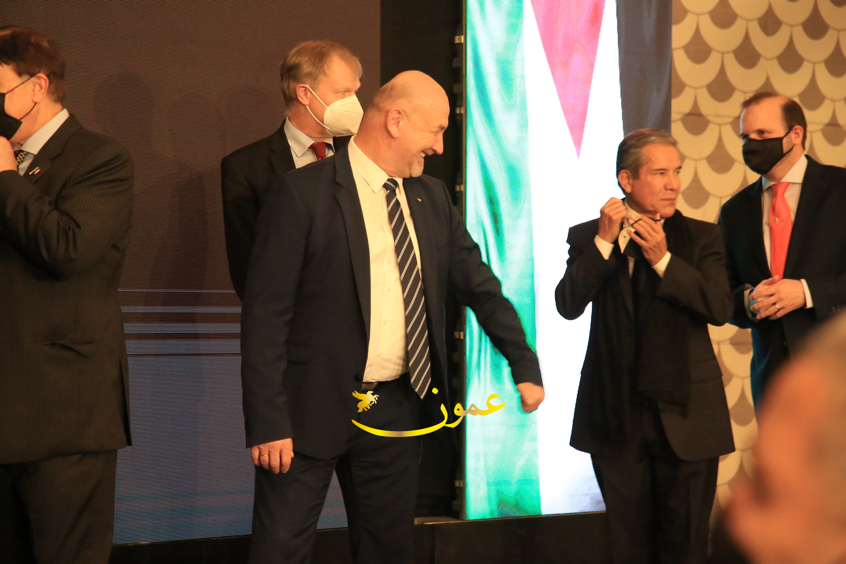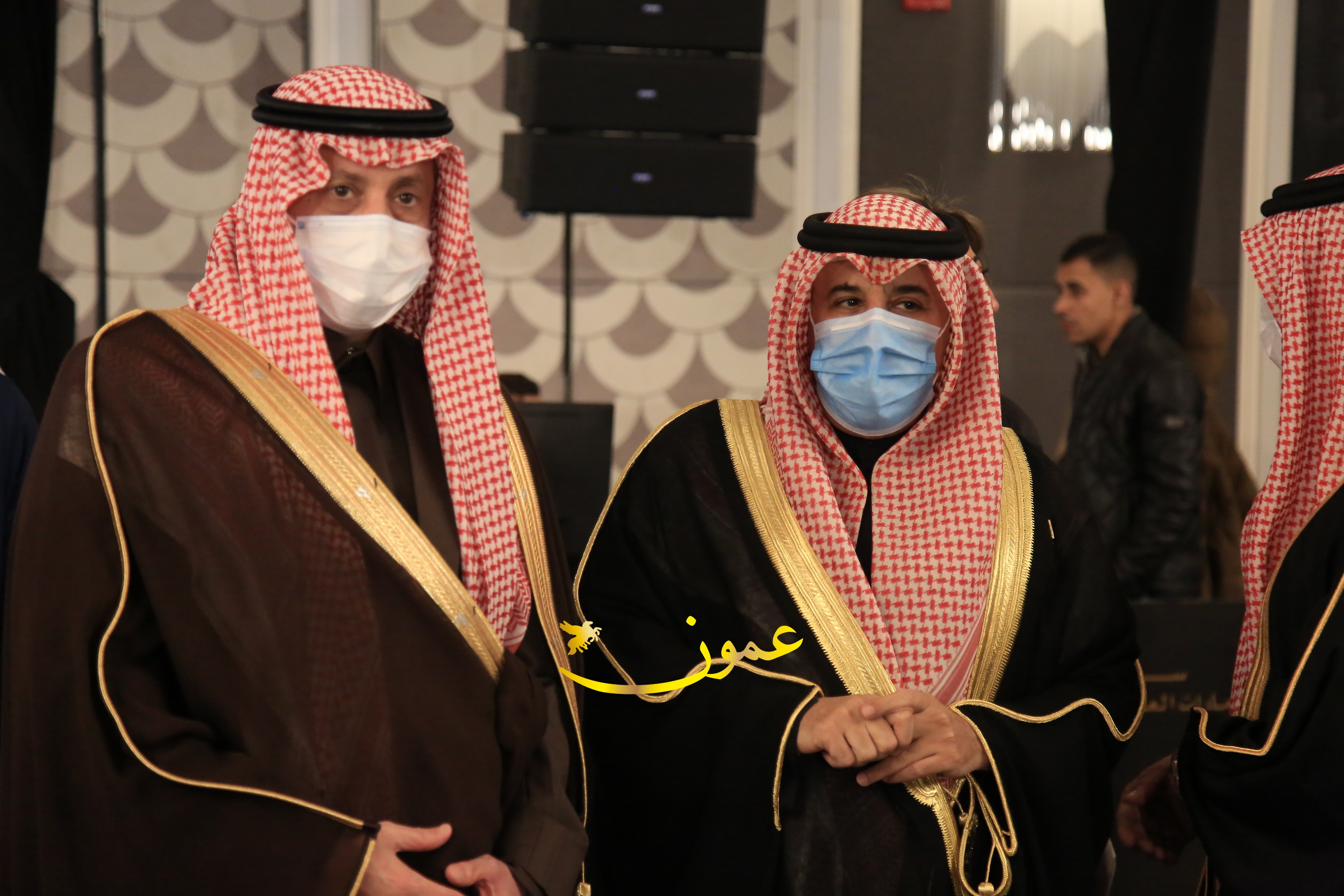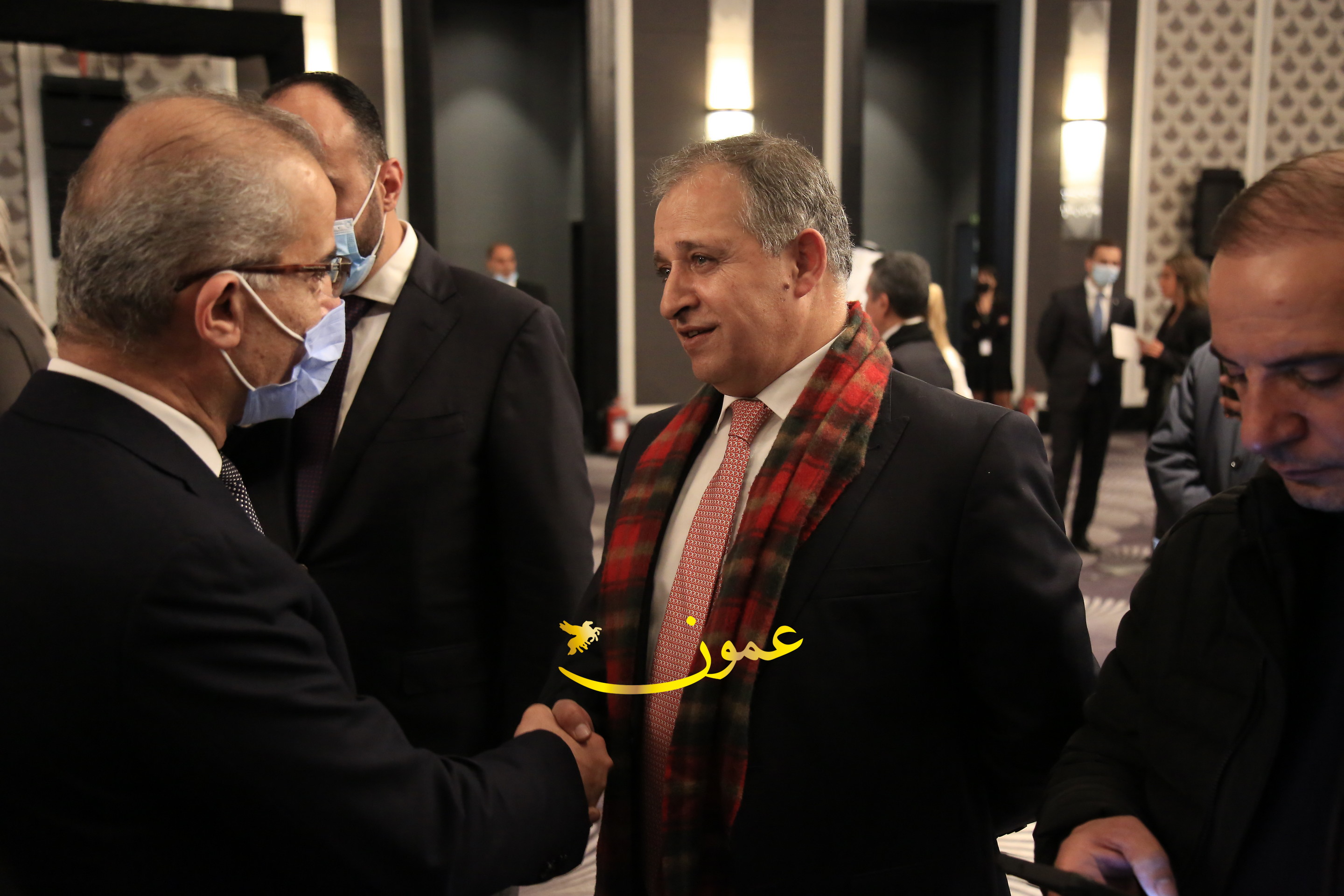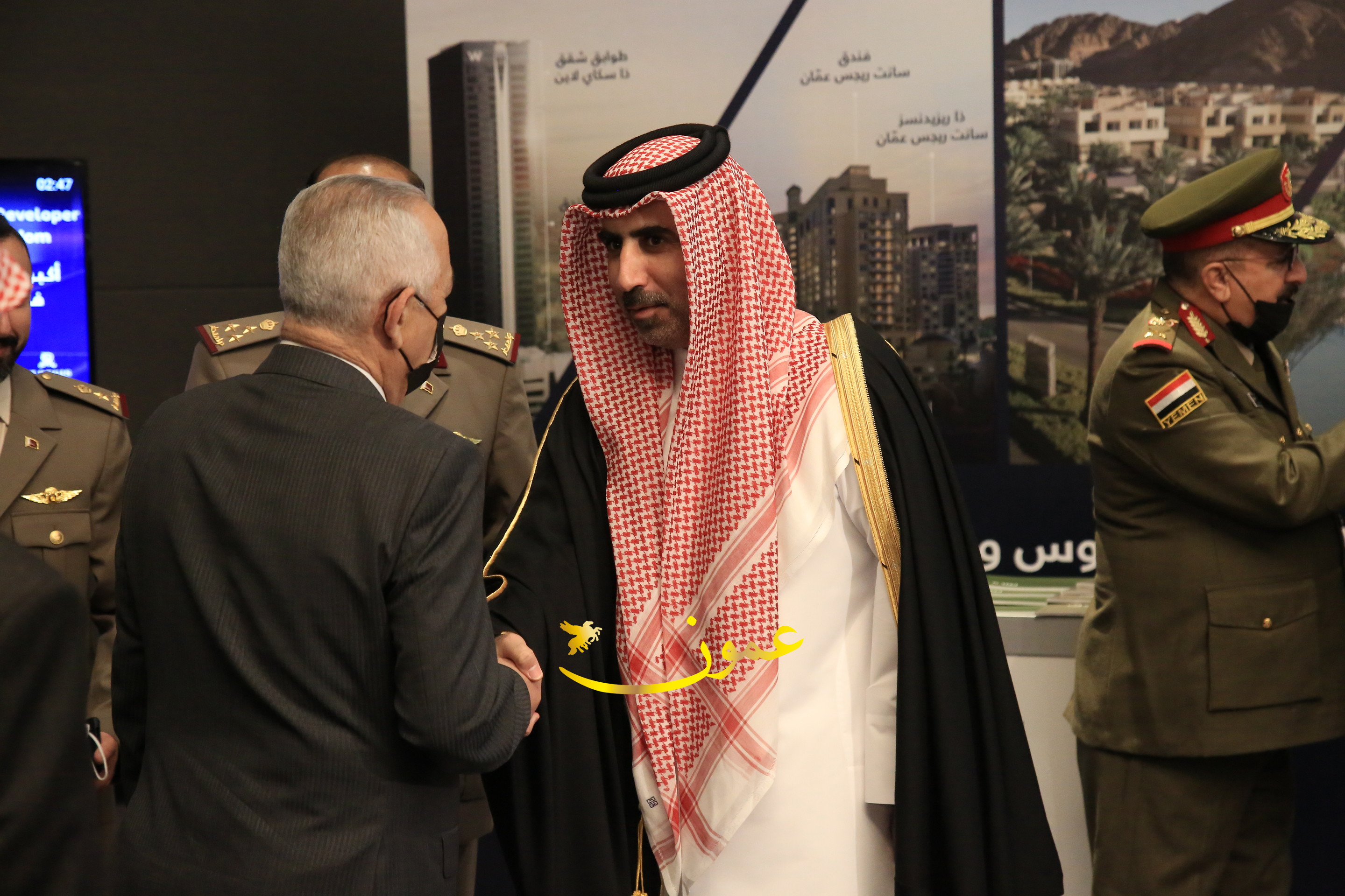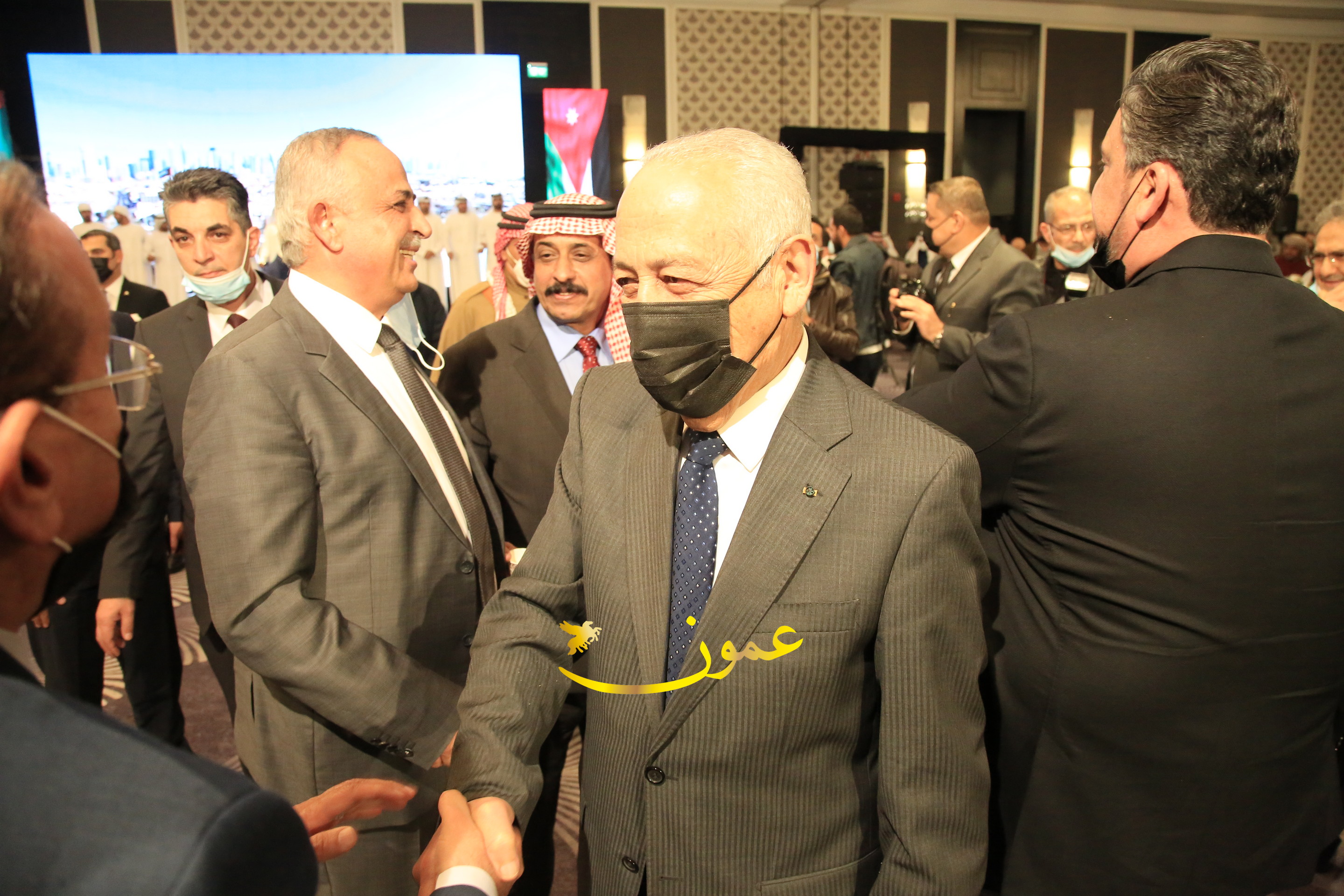 عمون - بمناسبة عيد الاتحاد الخمسين لدولة الإمارات العربية المتحدة، استقبل سفير دولة الإمارات العربية المتحدة لدى المملكة الأردنية الهاشمية أحمد علي البلوشي مساء الأربعاء في الإحتفال الذي أقامته السفارة الإماراتية بالعاصمة الأردنية عمّان، كبار المسؤولين الأردنيين يتقدمهم رئيس مجلس الأعيان فيصل الفايز، ورئيس مجلس النواب عبدالكريم الدغمي، ورئيس الديوان الملكي يوسف العيسوي، وعدد من أصحاب المعالي والسعادة: الوزراء والأعيان والنواب وكبار رجال السلك الدبلوماسي والعسكري والقضائي ورؤساء البعثات الدبلوماسية العربية والأجنبية وشخصيات سياسية واقتصادية وثقافية وإعلامية ومسؤولي مؤسسات المجتمع المدني والمنظمات الدولية، إضافة إلى شيوخ العشائر من مختلف محافظات المملكة.