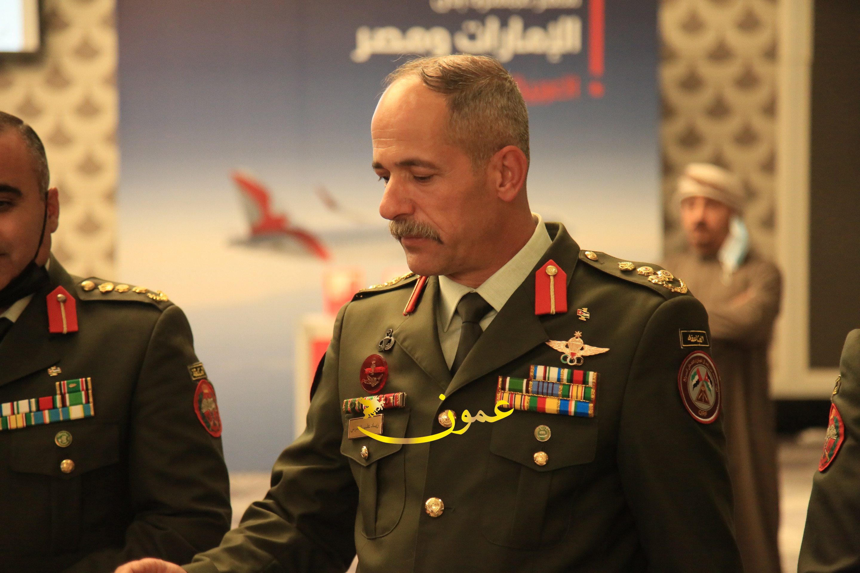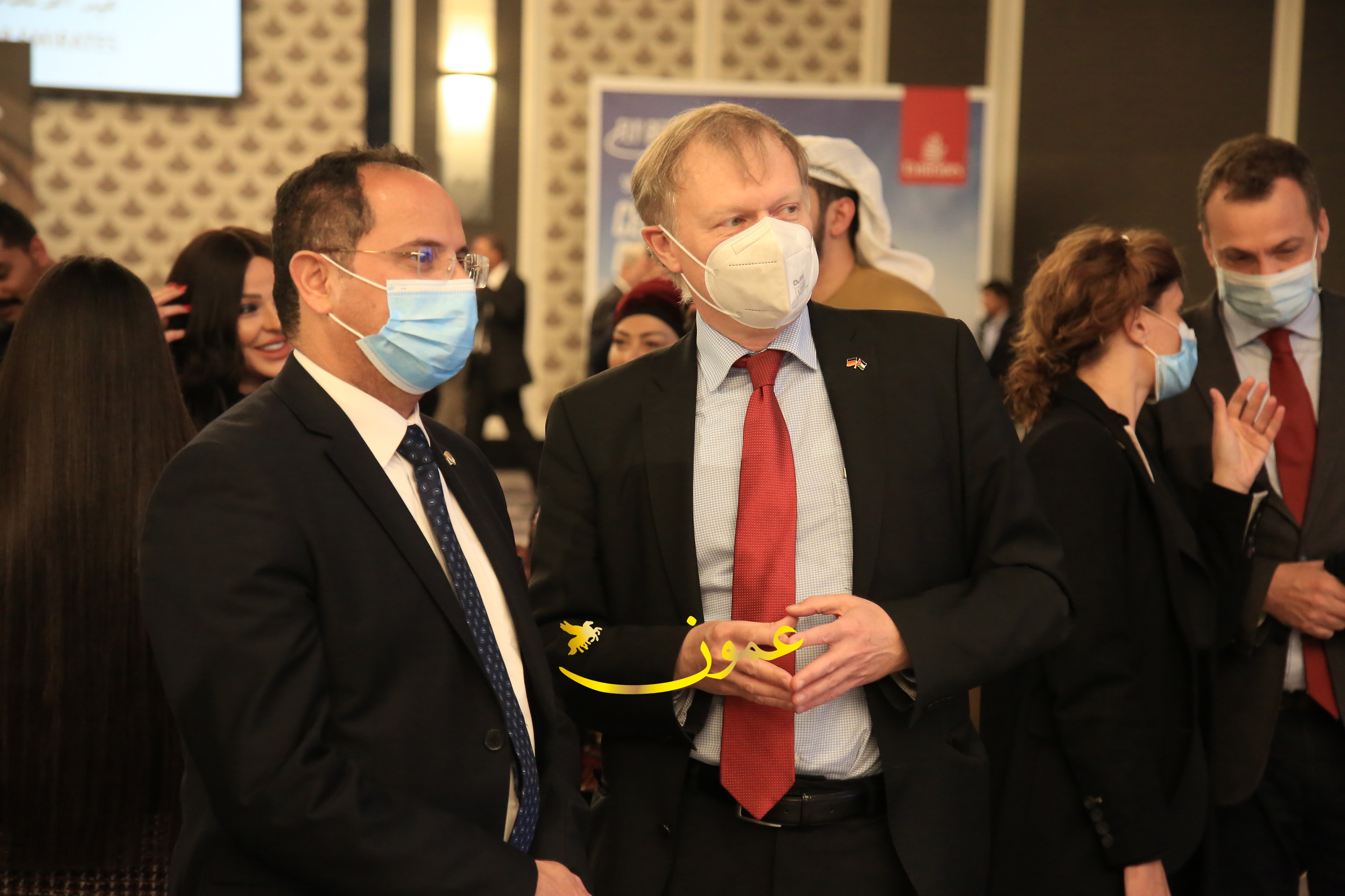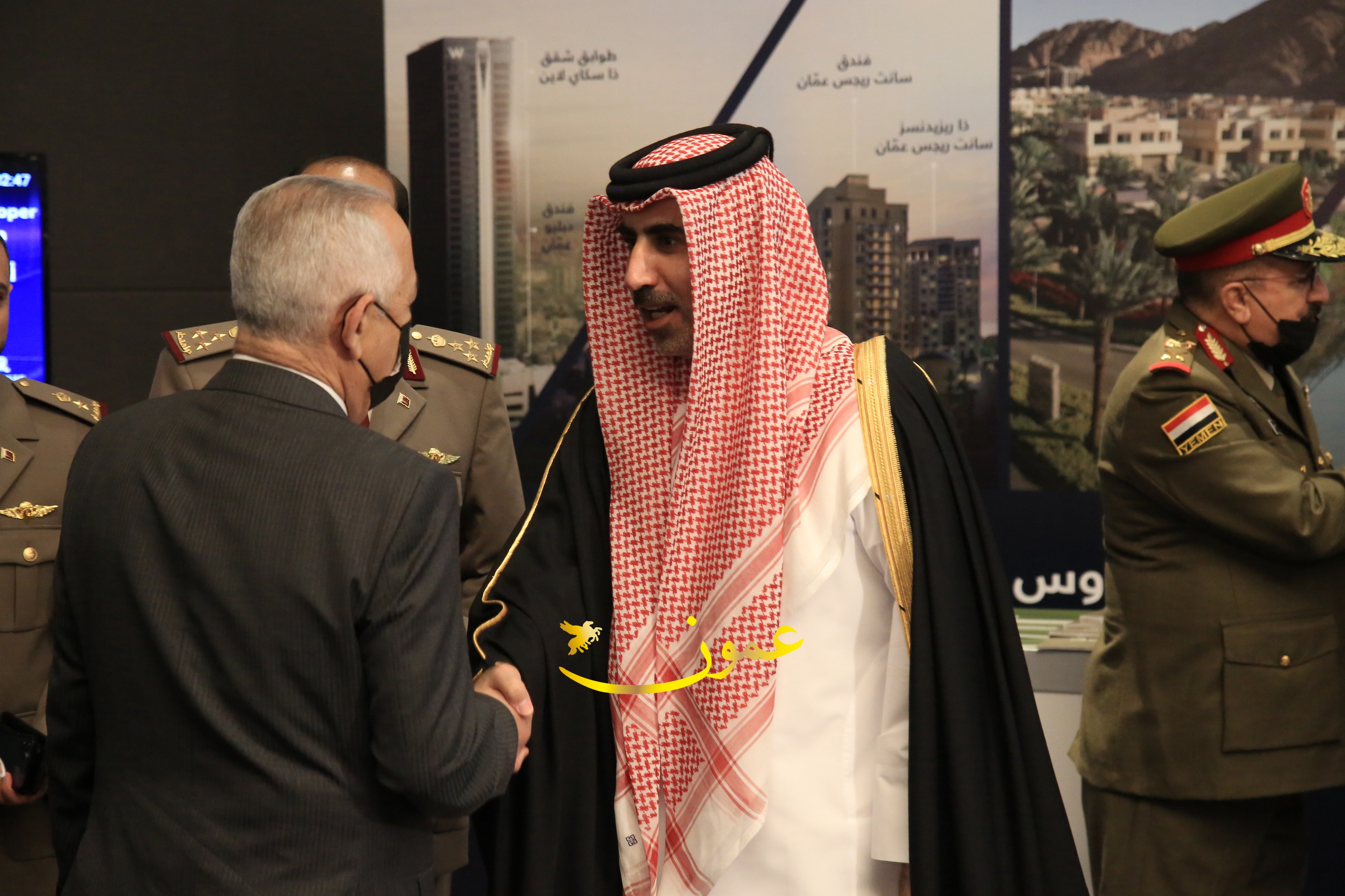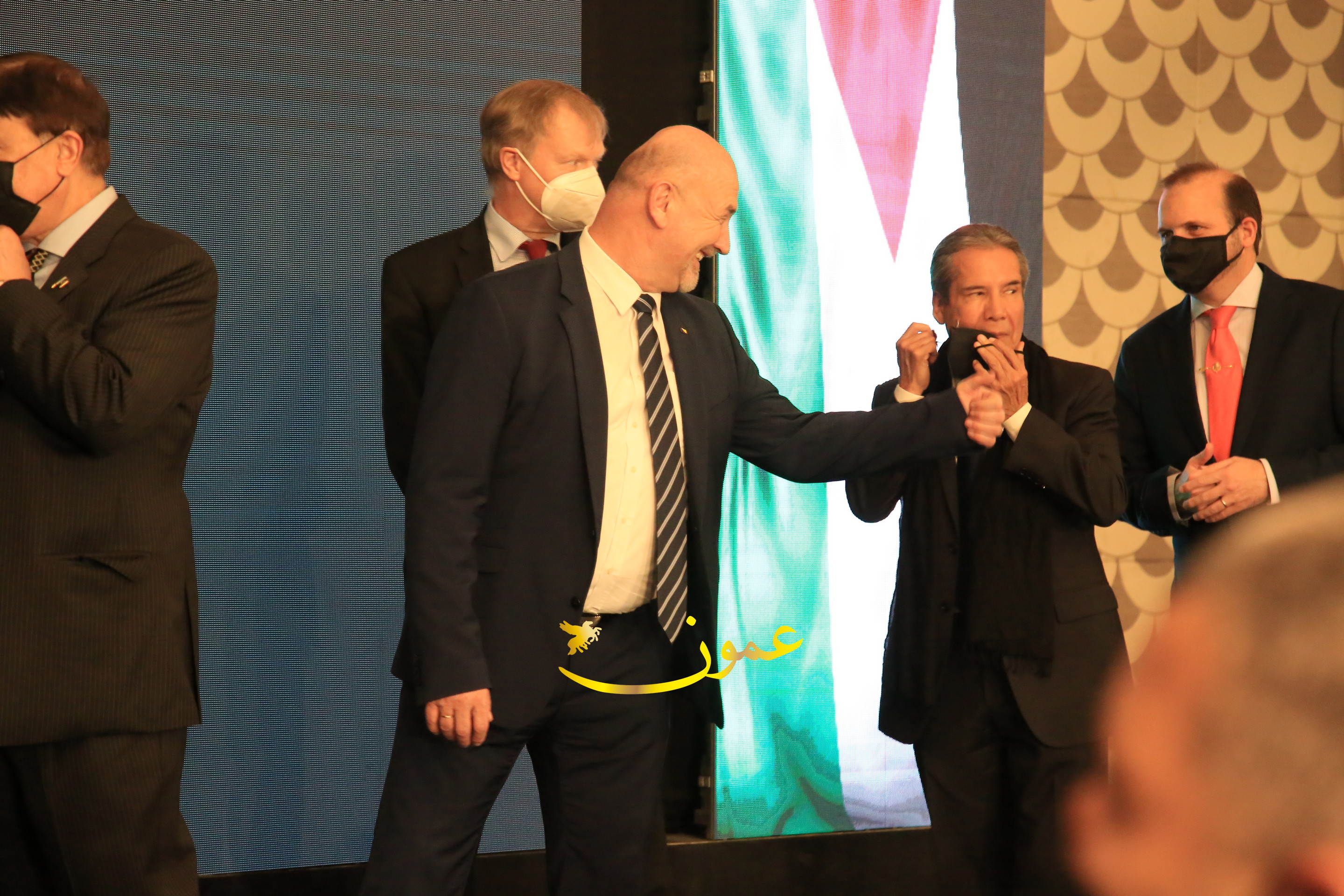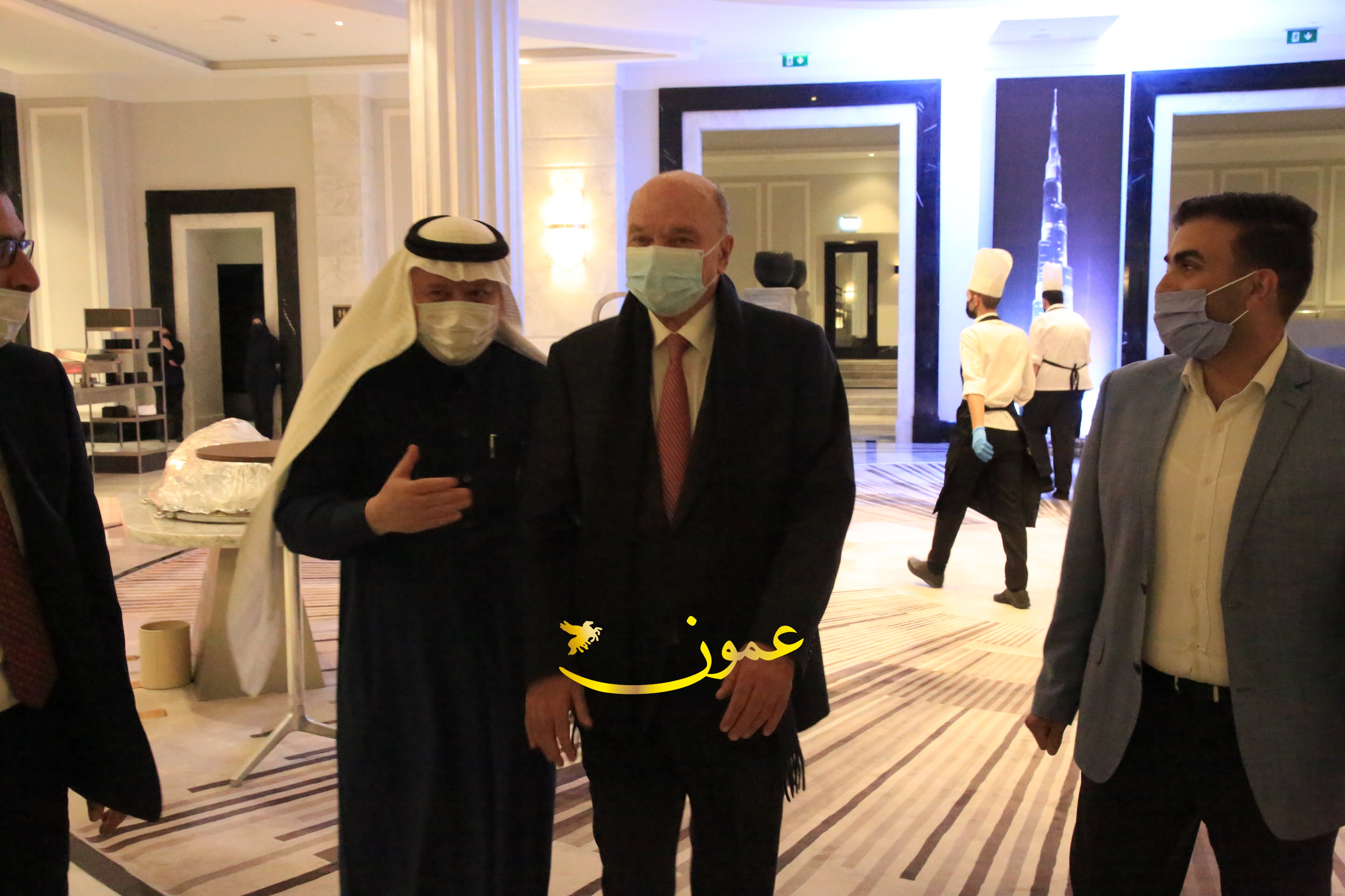 عمون - بمناسبة عيد الاتحاد الخمسين لدولة الإمارات العربية المتحدة، استقبل سفير دولة الإمارات العربية المتحدة لدى المملكة الأردنية الهاشمية أحمد علي البلوشي مساء الأربعاء في الإحتفال الذي أقامته السفارة الإماراتية بالعاصمة الأردنية عمّان، كبار المسؤولين الأردنيين يتقدمهم رئيس مجلس الأعيان فيصل الفايز، ورئيس مجلس النواب عبدالكريم الدغمي، ورئيس الديوان الملكي يوسف العيسوي، وعدد من أصحاب المعالي والسعادة: الوزراء والأعيان والنواب وكبار رجال السلك الدبلوماسي والعسكري والقضائي ورؤساء البعثات الدبلوماسية العربية والأجنبية وشخصيات سياسية واقتصادية وثقافية وإعلامية ومسؤولي مؤسسات المجتمع المدني والمنظمات الدولية، إضافة إلى شيوخ العشائر من مختلف محافظات المملكة.