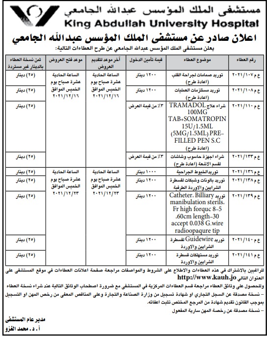 عطاء صادر عن مستشفى الملك المؤسس الجامعي
