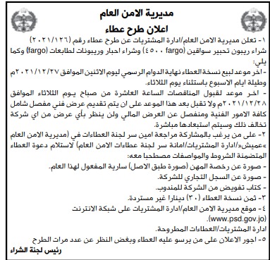 عطاء صادر عن مديرية الامن العام