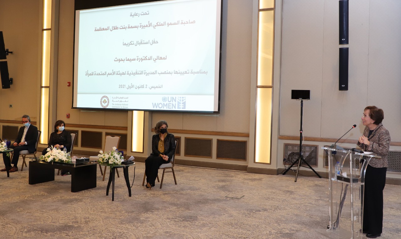 وبينت، خلال رعايتها حفل الاستقبال، الذي اقامته هيئة الامم المتحدة للمرأة واللجنة الوطنية الأردنية لشؤون المرأة، تكريما للمديرة التنفيذية لهيئة الأمم المتحدة للمرأة الدكتورة سيما بحوث، أن هذا الاختيار له دلالات مهمة ليس للمرأة الأردنية فحسب بل للمرأة العربية ككل، ويمثل اعترافا عالميا بقدرة وكفاءة المرأة العربية في خدمة قضايا نظيرتها في كل دول العالم.