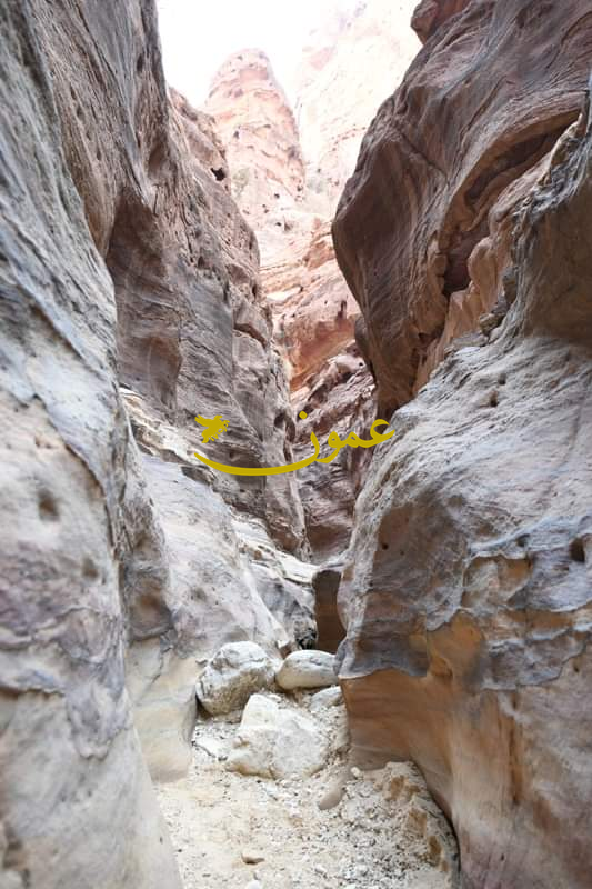 بالرغم من أنه وادٍ جاف إلا أن فيه من الحياة ما يكفي بأثر عين الماء الوحيدة الموجودة على مدخله والتي أصبحت قبلة الرعاة لسقاية ماشيتهم والاستراحة برحلتهم اليوم ما بين الذهاب والعودة، كان المسار فوق صخور جيرية بيضاء وحجارة رملية وطينية وما بينها من شظايا صوانة، تأخذك لارتفاع تدريجي دون أن تشعر به ومتعة تحديد طريقك بعفوية المكان مستعين بعصي الارتكاز لضمان التوازن، بين جبال تلامس عنان السماء وشعاب الوادي والسَيد وصولا لملتقي وادي التبن غايتنا الثانية لرحلتنا.