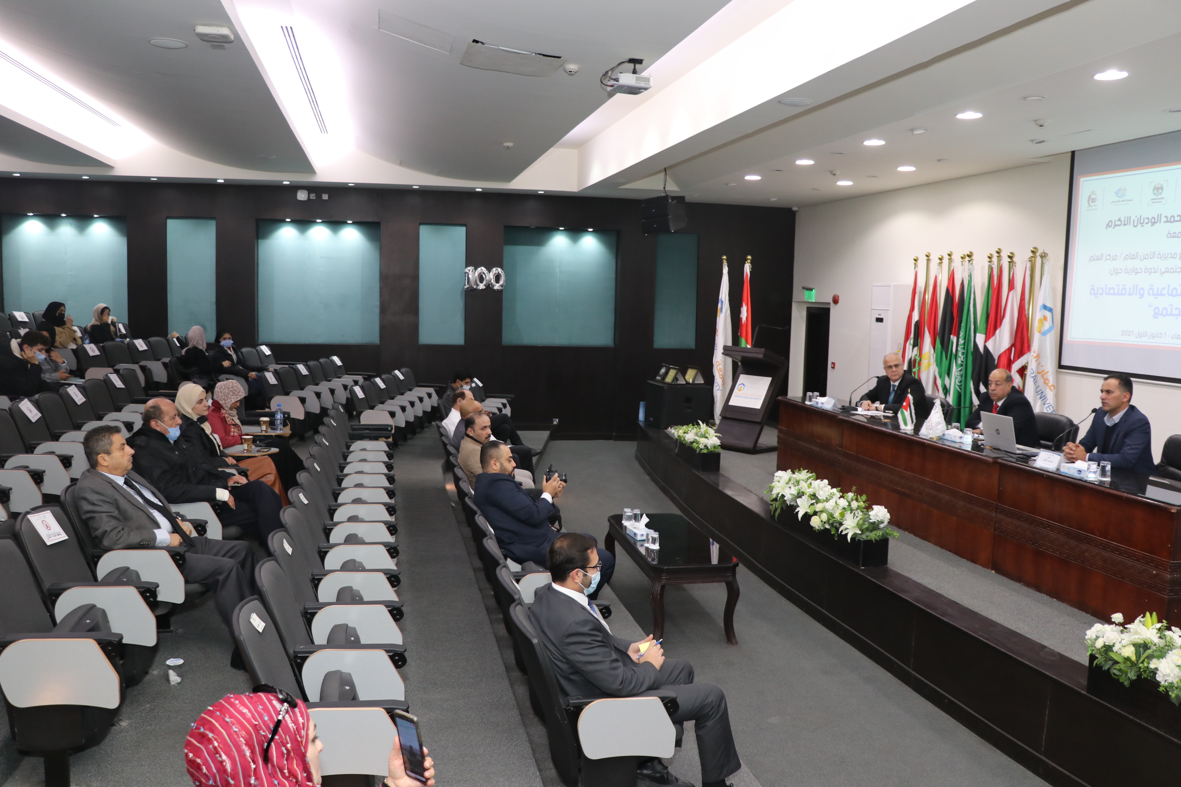 عمون - تحت رعاية رئيس جامعة عمان العربية الأستاذ الدكتور محمد الوديان وبالتعاون مع كل من جمعية السلم المجتمعي ومركز السلم المجتمعي / مديرية الامن العام عقدت في مدرج المئوية في رحاب جامعة عمان العربية الأسبوع الماضي ندوة بعنوان "الاشاعة ومخاطرها الاقتصادية والاجتماعية" بحضور مدير مركز السلم المجتمعي الرائد علاء الجمعات. |