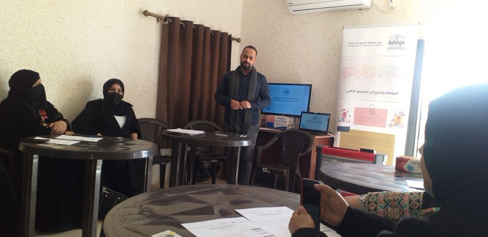 عمون - عقد مركز المواطنة بالتعاون مع الاتحاد النسائي الاردني العام والصندوق الكندي للتنمية للمبادرات المحلية اليوم الأحد في البادية الشمالية ، بحضور رئيسة الاتحاد الأردني العام الدكتورة ميسون تليلان السليّم؛ في جمعية سيدات ام الجمال ورشة العمل الأولى من برنامج المواطنة والتنوع في المجتمع الرقمي، الذي يمتد إلى 3 أيام، وتستفيد منه 10 جمعيات نسائية.