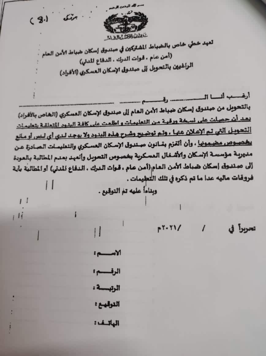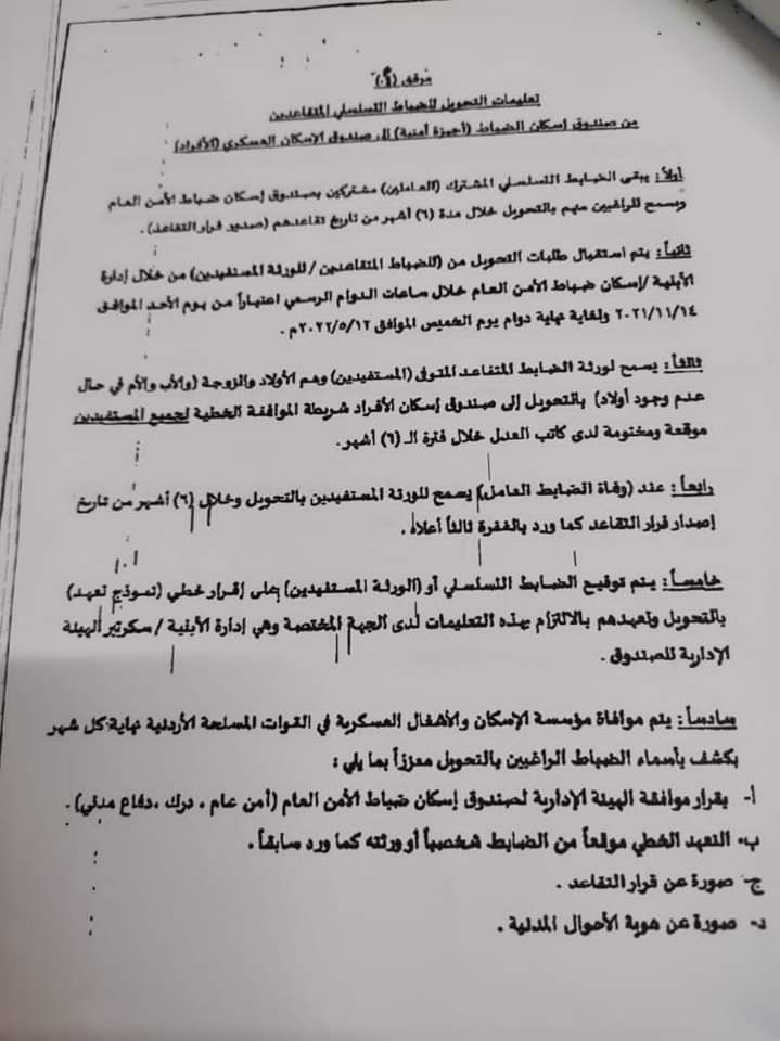تحويل اشتراكات صندوق اسكان ضباط الامن للمتقاعدين الى صندوق الاسكان العسكري16-12-2021 11:22 PM