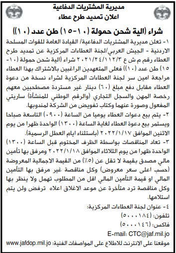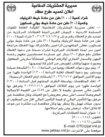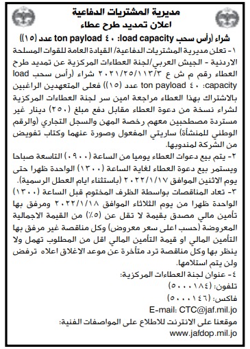 عطاءات صادرة عن مديرية المشتريات الدفاعية