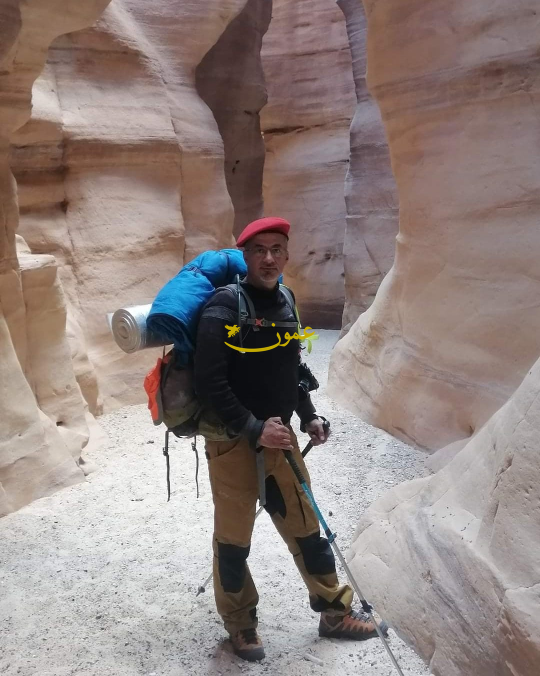 حملنا متاعنا المتضمن طعام وشراب ومعدات احترافية لمسير ثلاثة أيام بشكل كامل، والملائمة لبرودة الجو والمطر لنبدأ مسيرنا متكئين على عصي الارتكاز لحفظ التوازن وتخفيف ضغط الحمل على الساقين، متجهين غرباً نحو الوادي الذي اشتق اسمه من حمرة ماء السيل موسمي الجريان باللفظ المحلي لأهل البادية، بعد دراسة الحالة الجوية التي أكدت أن احتمالية هطول المطر مؤكدة من منتصف الليلة الثانية بعد ظهر اليوم الثالث آخذين بعين الاعتبار شروط السلامة والخروج من قلب الوادي الضيق قبل ذلك حسب البرنامج الزمني المعد بعناية وهو ما تم.