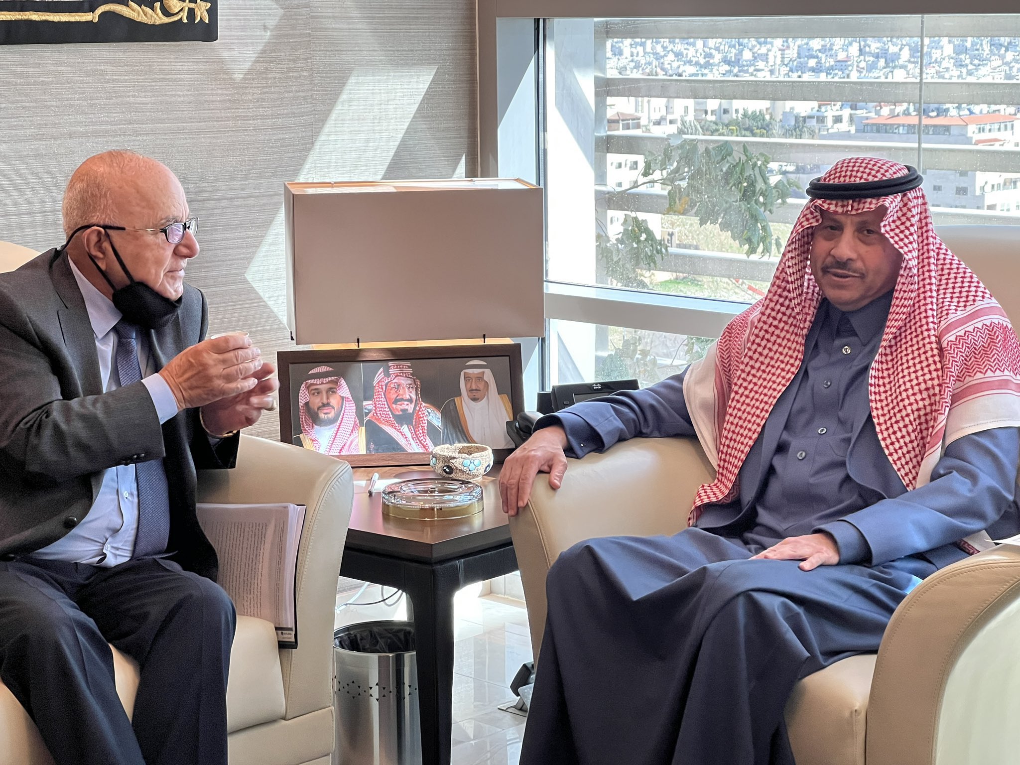 عمون - استقبل السفير السعودي في الأردن نايف بن بندر السديري في مكتبه الاحد، رئيس الوزراء الأسبق، نائب رئيس المجلس الأعلى للعلوم والتكنولوجيا الدكتور عدنان بدران وأمين عام المجلس الدكتور ضياء الدين عرفة.