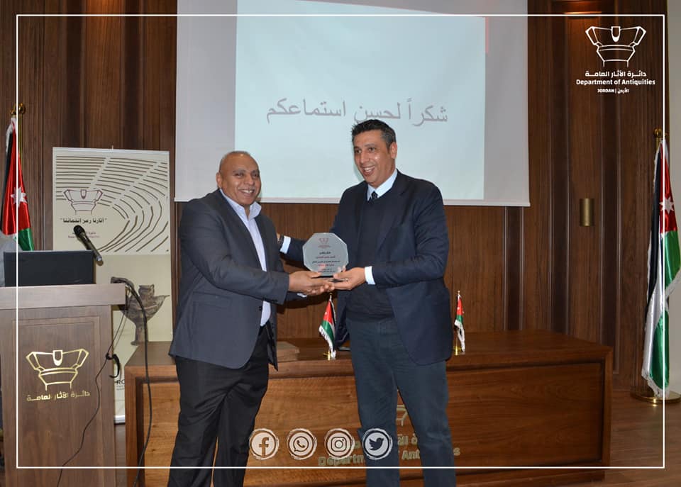 وفي نهاية الحفل كرّم الدكتور فادي بلعاوي مدير عام دائرة الآثار العامة السيد محاميد بتسليمه درع الموسم الثقافي.