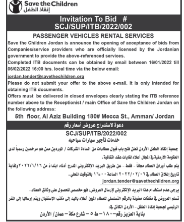 مطلوب توفير خدمات تأجير سيارات سياحية