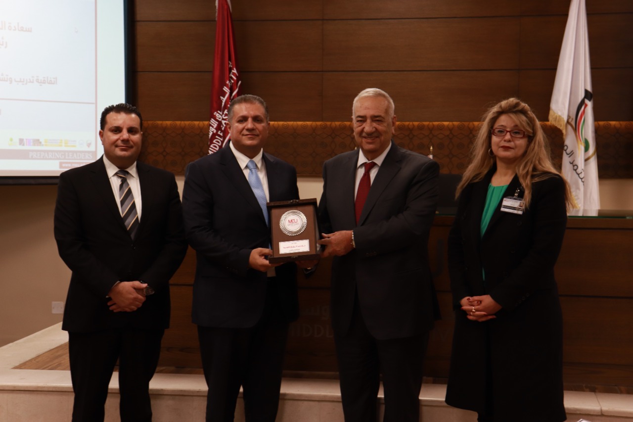 عمون - التقت رئيسة جامعة الشرق الأوسط MEU الأستاذة الدكتورة سلام خالد المحادين، بحضور رئيس مجلس أمناء الجامعة الدكتور يعقوب ناصر الدين، ورئيس مجلس إدارة مجموعة شركات أيوب استيتيه وإخوانه المهندس أيوب استيتيه، للتصميم الداخلي والديكور؛ لتوقيع اتفاقية تعاونٍ ثنائية في مجال التدريب والتشغيل.
