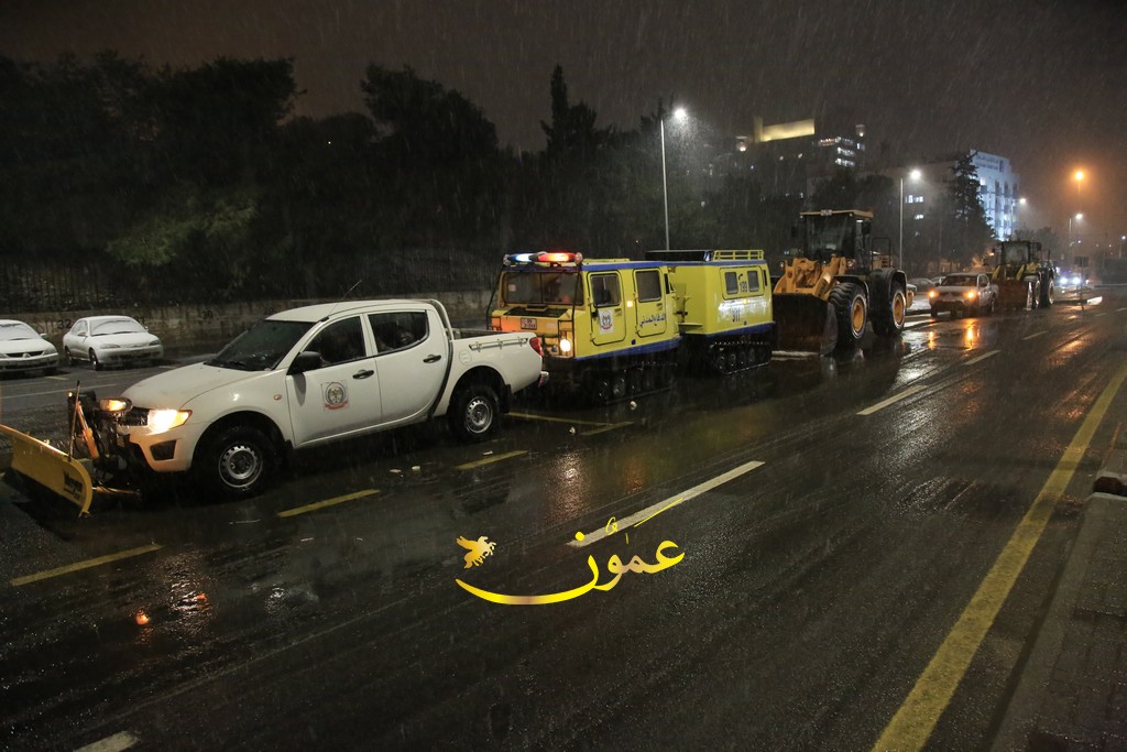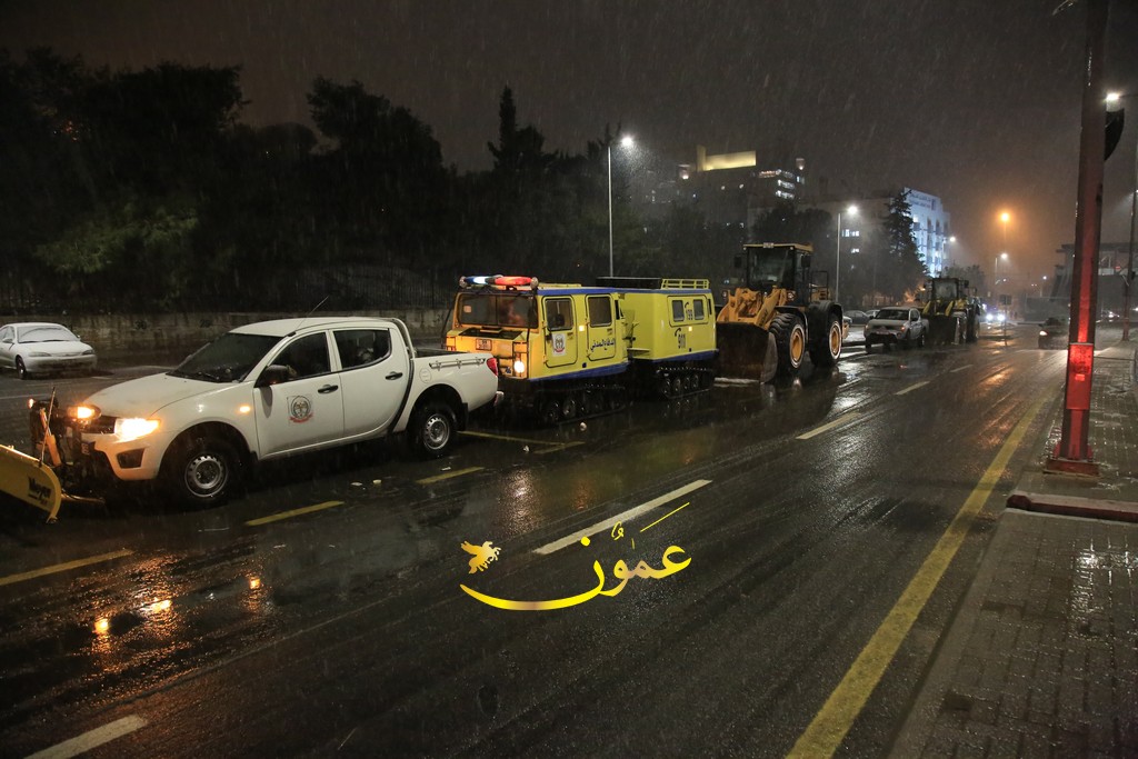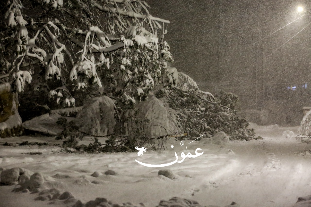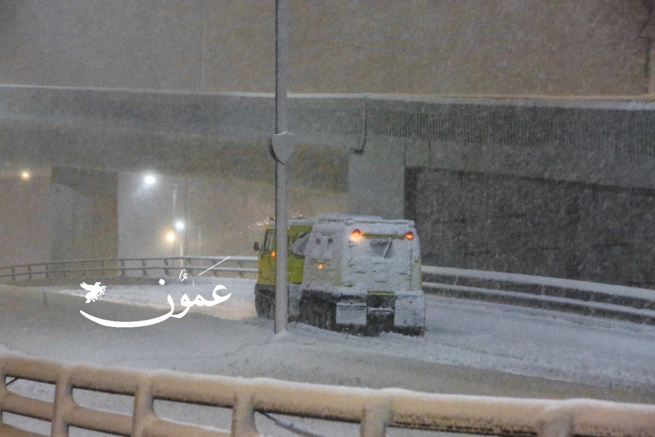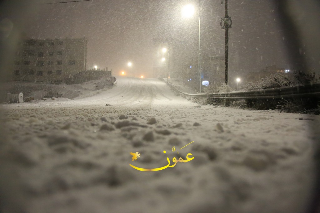 ورجح أن تصل سماكة الثلوج إلى 30 سم في مرتفعات رأس منيف بمحافظة عجلون، و25 سم في مرتفعات صويلح بالعاصمة عمّان.