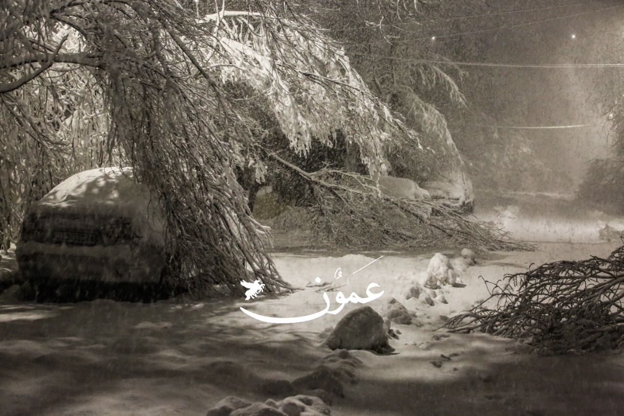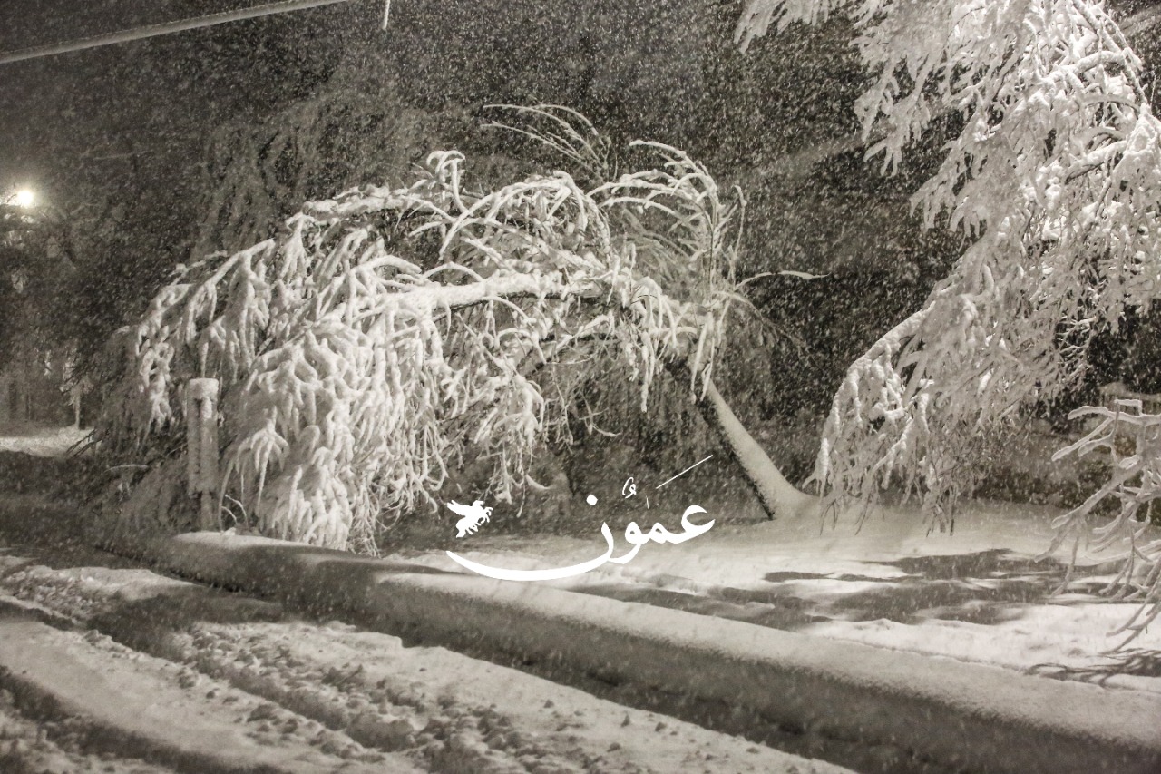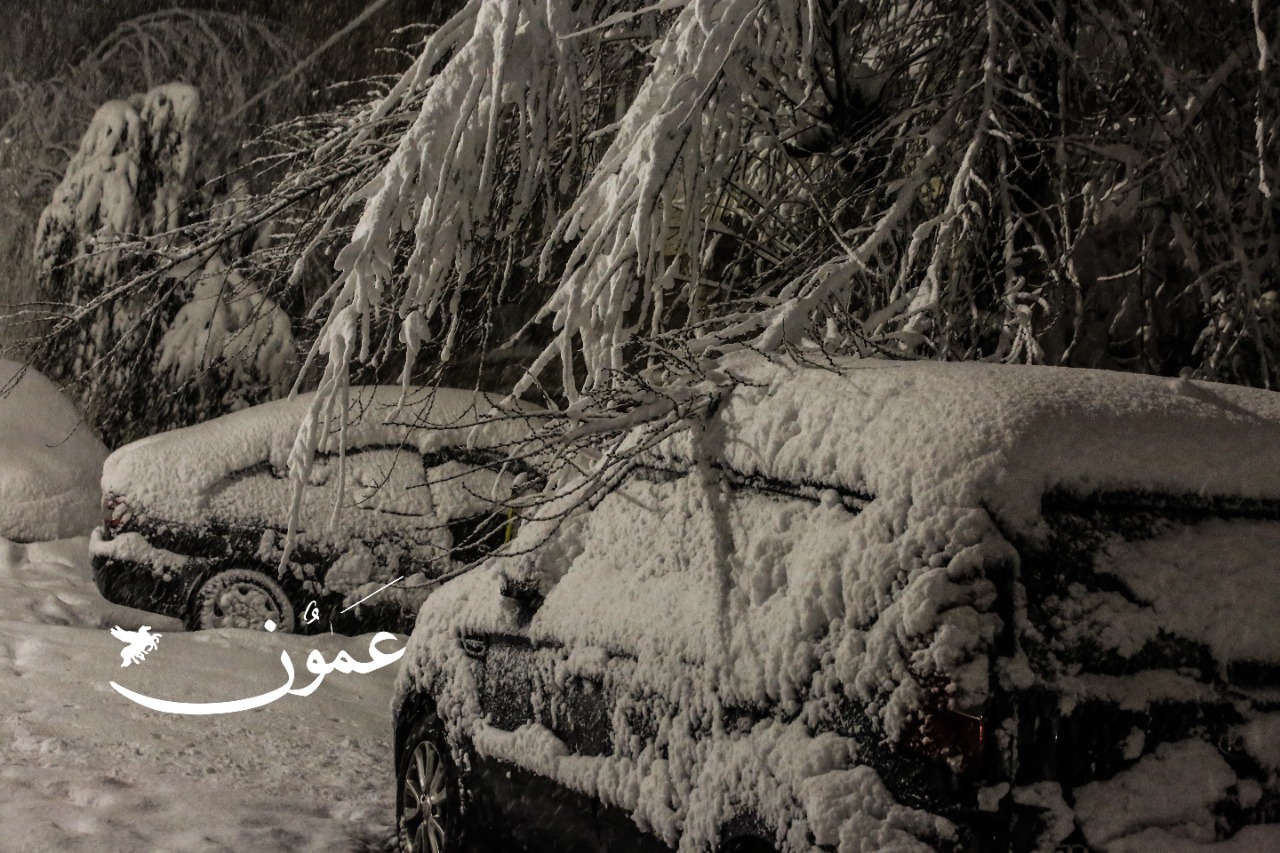 وتراكمت الثلوج بداية في مرتفعات الجنوب، القادسية، الشراه، الطيبة، ووادي موسى، والشمال رأس منيف وجبال عجلون.