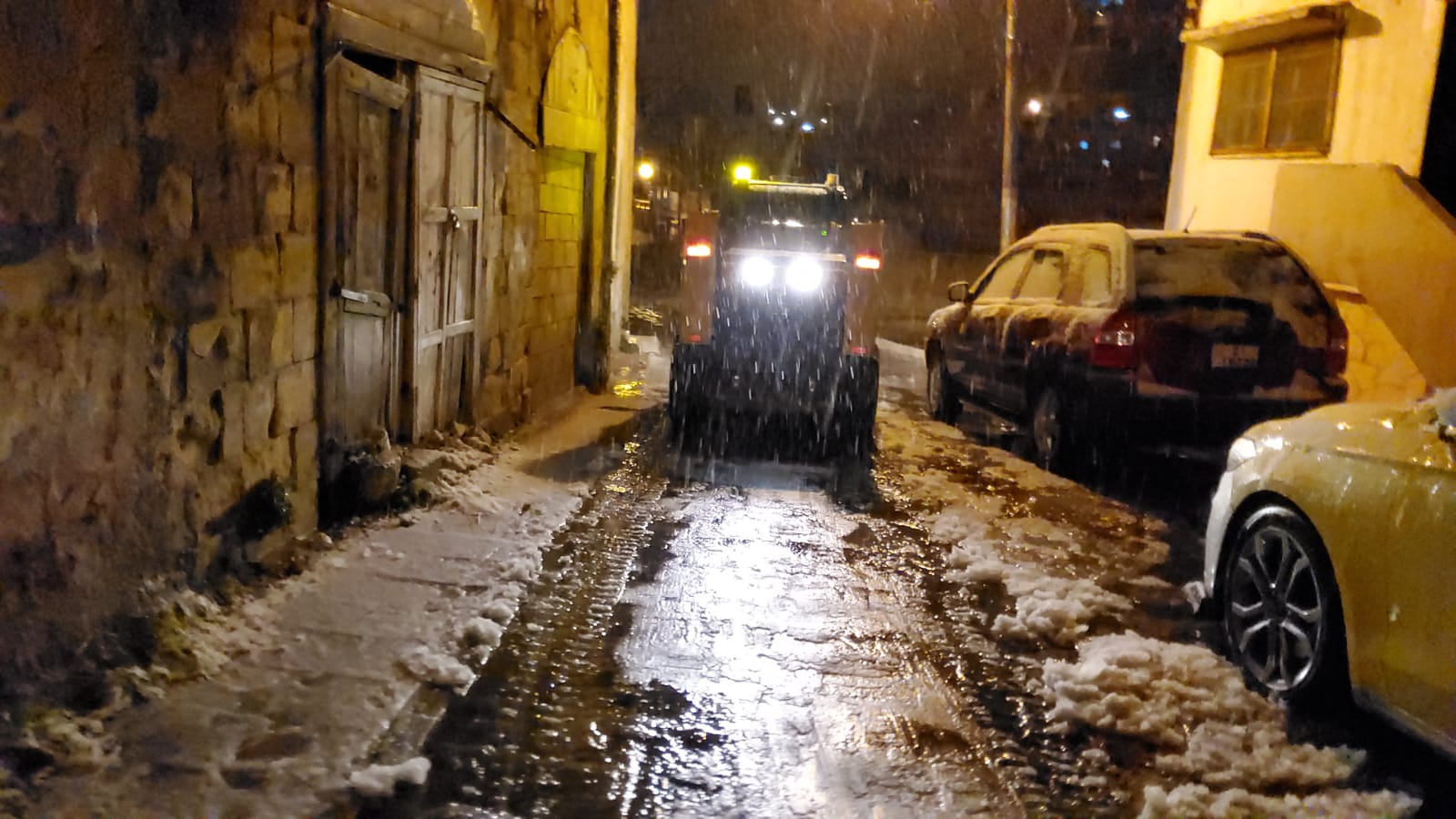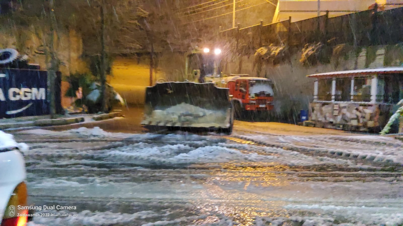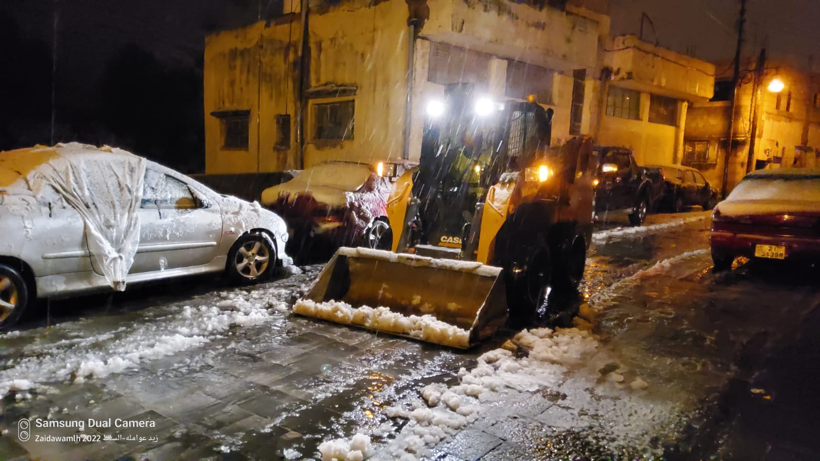 عمون - باشرت كوادر بلدية السلط الكبرى ومنذ بداية تأثير المنخفض القطبي على مدينة السلط الكبرى و تساقط الثلوج وتراكمها في بعض المناطق.