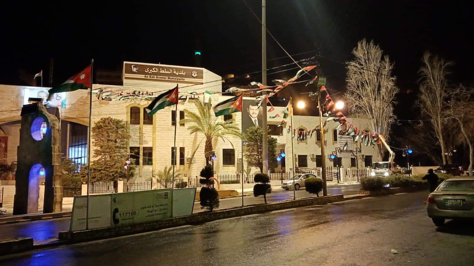 وبالرغم من تبعات المنخفض الجوي من تشكل للسيول وانجماد كانت تعليمات كريشان للبلديات بتزيين المباني وانارتها وتعليق الاعلام وصور جلالة الملك احتفالا وابتهاجا بعيد ميلاد قائد الوطن.