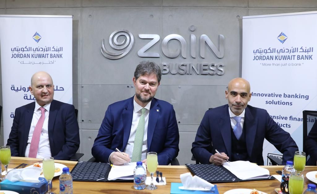 وتم توقيع الإتفاقية في مقر المركز الواقع في مجمع الملك الحسين للأعمال، حيث وقّعها كل من الرئيس التنفيذي لشركة زين الأردن السيد فهد الجاسم، والمدير العام التنفيذي للبنك الأردني الكويتي السيد هيثم البطيخي.