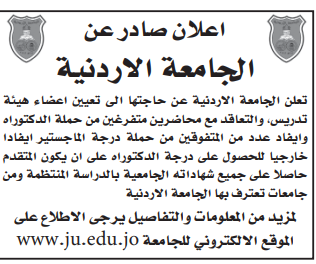الجامعة الاردنية بحاجة لتعيين اعضاء هيئة تدريسية