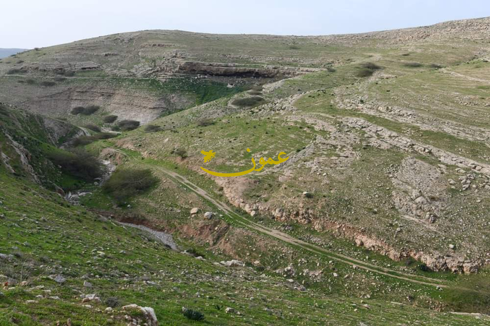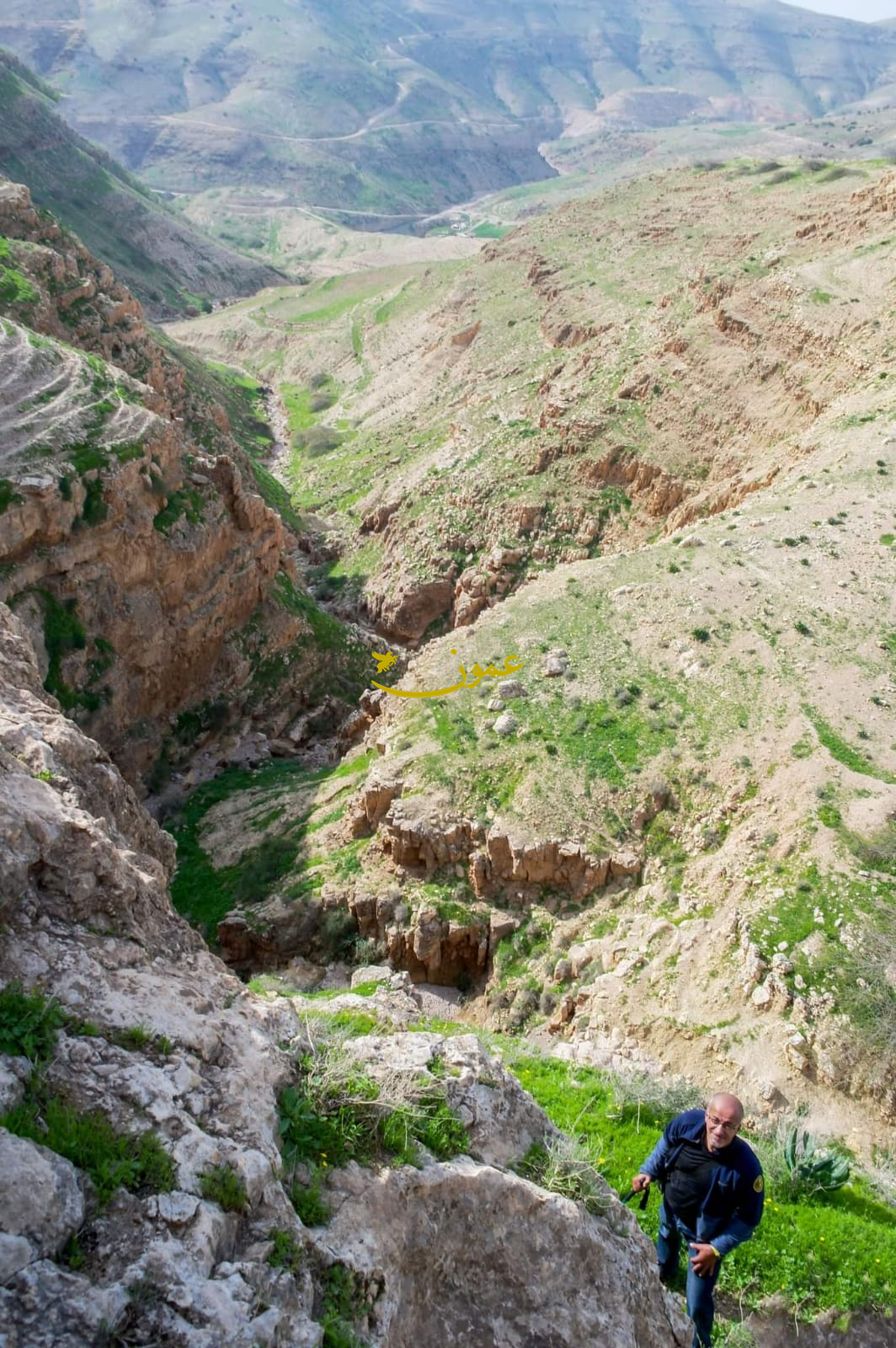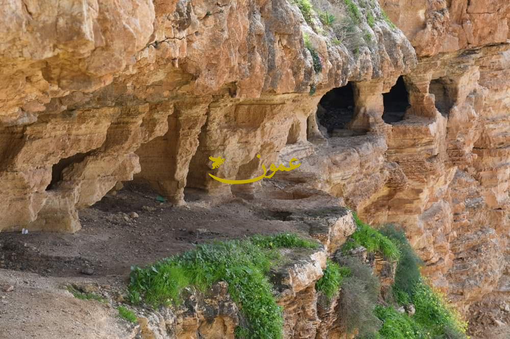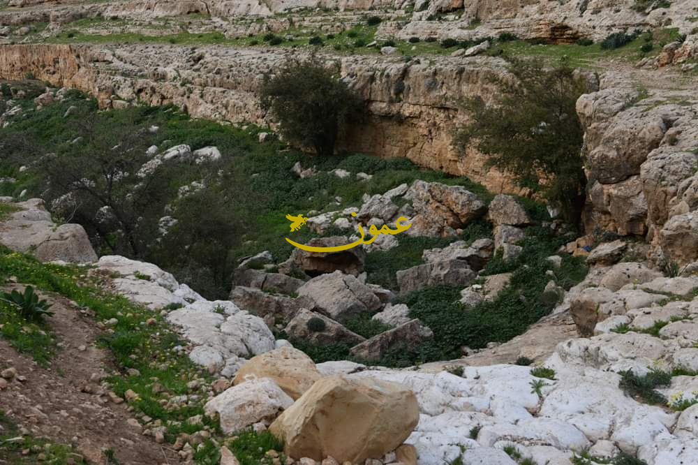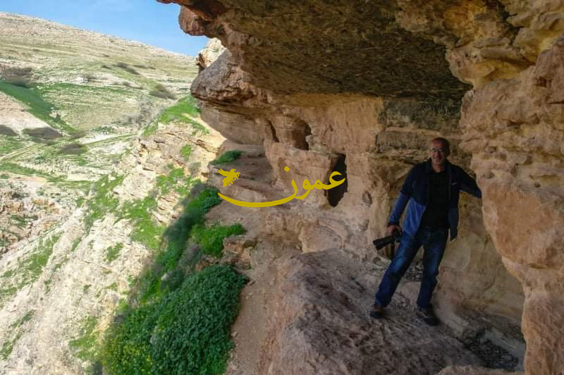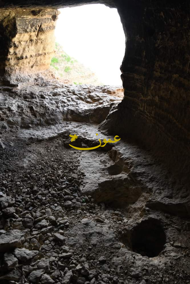 طريقنا دكته أقدام الرعاة بدرب ترابيّ، واضح المعالم وسهل المسير، بين تلال صخرية لا أشجار فيها وما بينها نباتات الربيع، أخذنا الطريق ونحن بشوق لغايتنا التي حدثنا عنها مضيفنا من بني عباد ذو التاريخ المتجذر بالمكان، مروراً بسلسلة من الكهوف بين منحنيات الجبال إلى أن وصلنا لمقصدنا المستتر عن الأعين ولا يعرف زاويته إلا القليل لغياب البحث والإعلام ودافع المعرفة والاستكشاف.