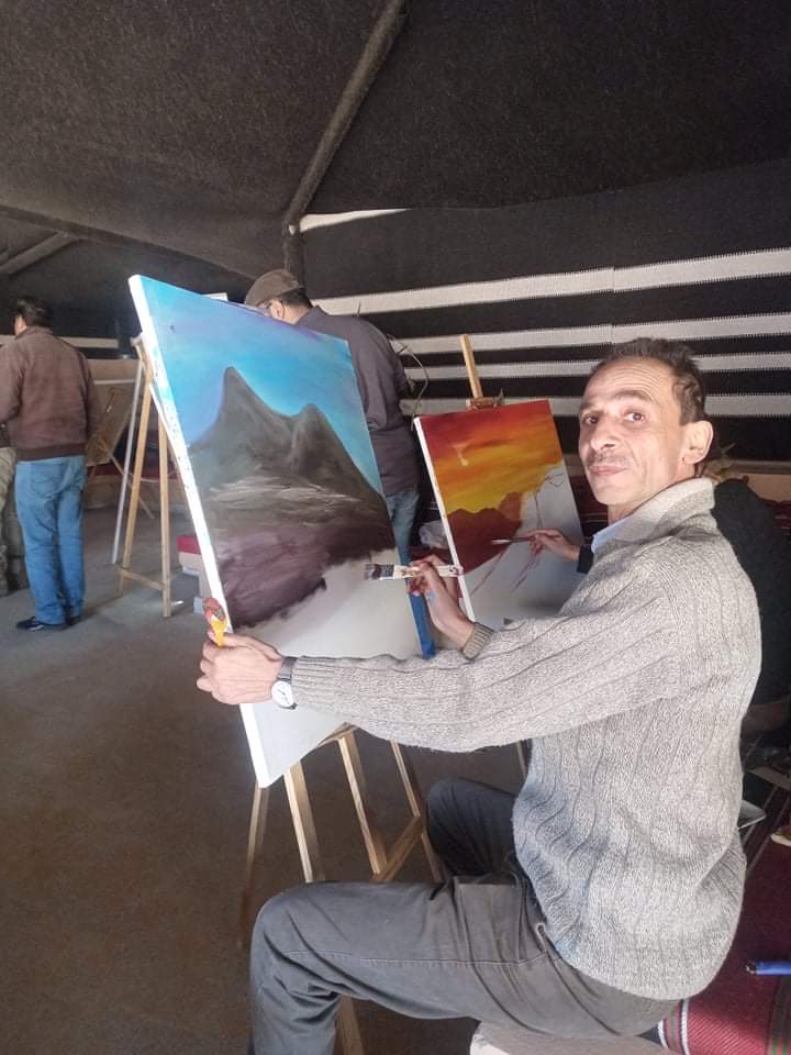 عمون - برعاية وزراة الثقافة اطلقت شبكة الفنون التشكيلية تظاهرة "وادي القمر" في منتجع سنام السياحي في وادي رم بالتعاون مع المجلس العربي لحقوق الانسان والسلام الدولي، ومنتدى البيت العربي الثقافي وبحضور لافت من رواد الفن التشكيلي ، وكوكبة من الشعراء والكتاب المميزين حيث اجتمعوا باهم المواقع السياحية في وادي رم بفعالية نوعية ضمت رسومات اظهرت جمال الوطن ومواقعه السياحية بأبهى صورة من خلال سمبوزيوم للفنانين التشكيليين بخيمة في احضان البادية الاردنية. |