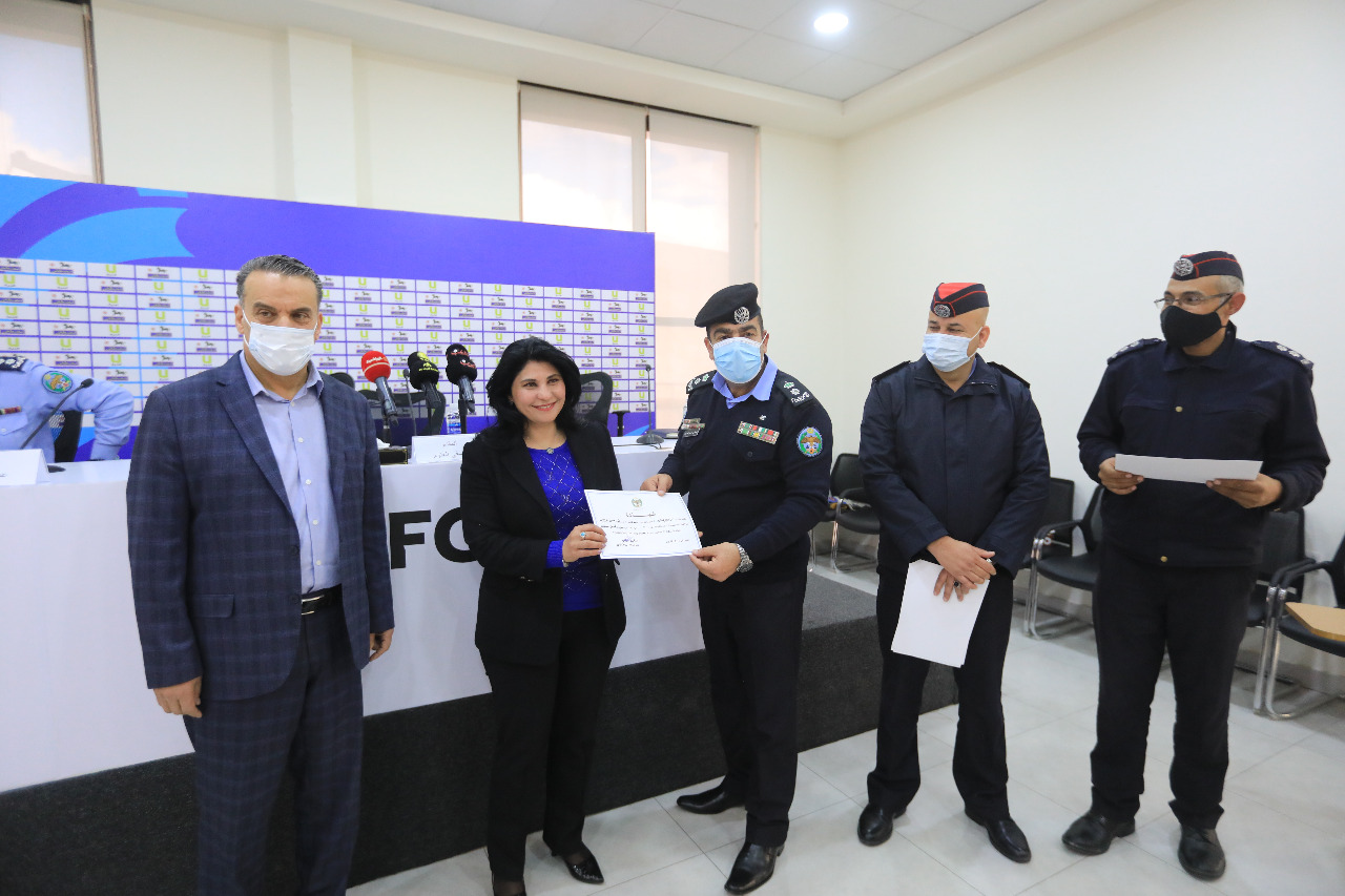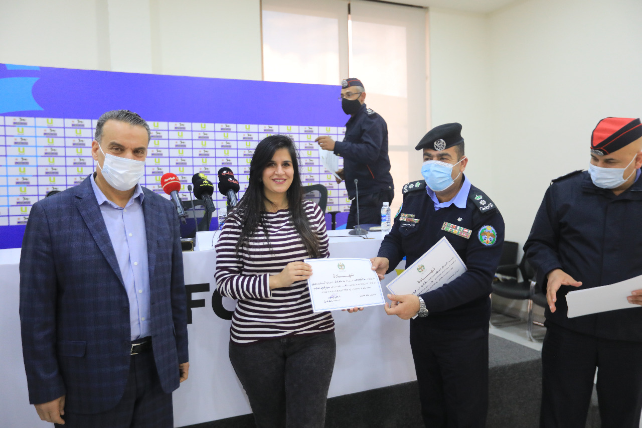 عمون - رعى مدير عام مدينة الحسين للشباب بسام الخلايلة ورئيس شعبة الشرطة المجتمعية في مديرية الإعلام والشرطة المجتمعية المقدم وصفي العتوم اليوم حفل تخريج ٣٧ مشارك من موظفين مدينة الحسين للشباب في دورة اصدقاء الامن العام.