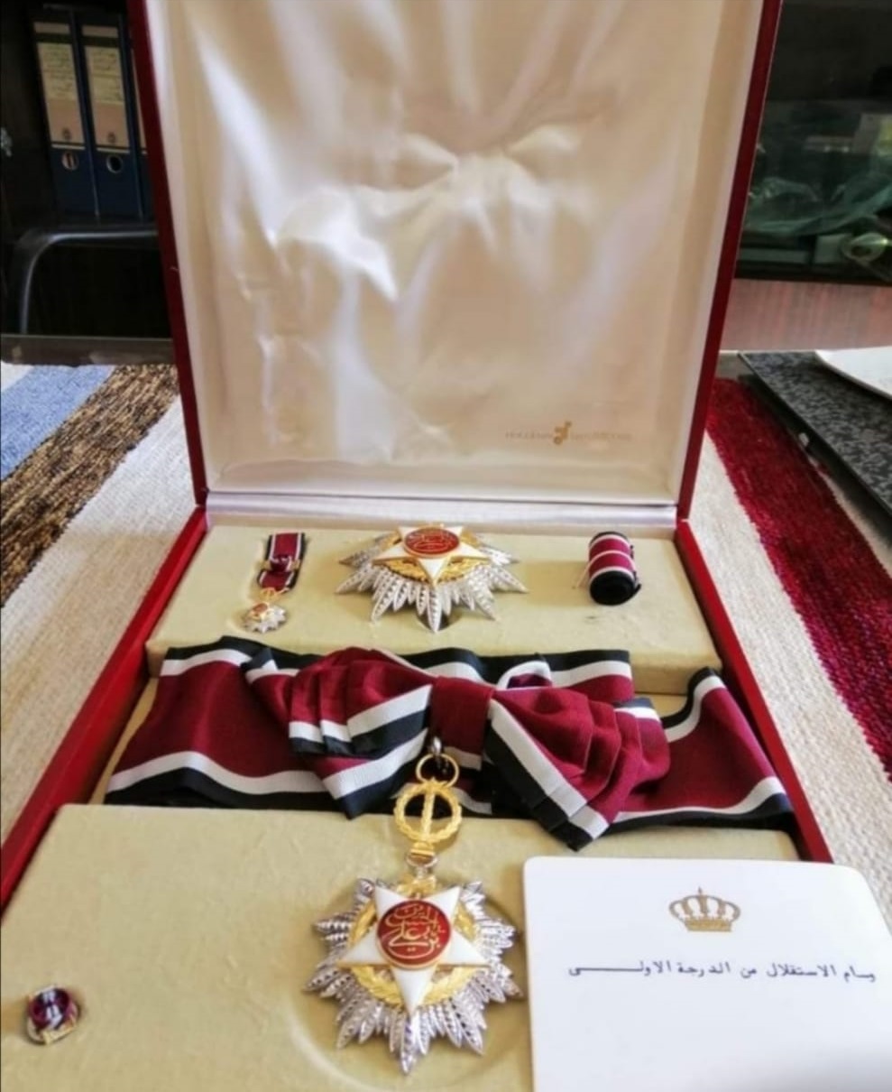 وتقلد عدة أوسمة منها وسام الاستقلال من الدرجة الثانية، ووسام الاستقلال من الدرجة الاولى من جلالة الملك الحسين طيب الله ثراه، ووسام الفارس من ملك السويد.