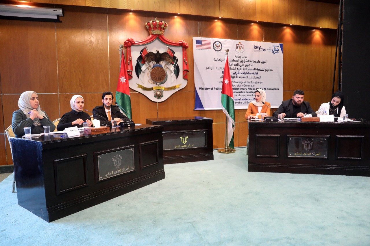 عمون - تحت رعاية امين عام وزارة الشؤون السياسية والبرلمانية الدكتور علي الخوالدة، اقامت مفاتيح للتنمية المستدامة الفعالية الختامية لبرنامج قادة مناظرات الاردن بدعم من السفارة الامريكية في الاردن، وبحضور عدد من الضيوف والمشاركين في البرنامج من الخمسة محافظات وهي معان، البلقاء، جرش، مادبا والزرقاء.