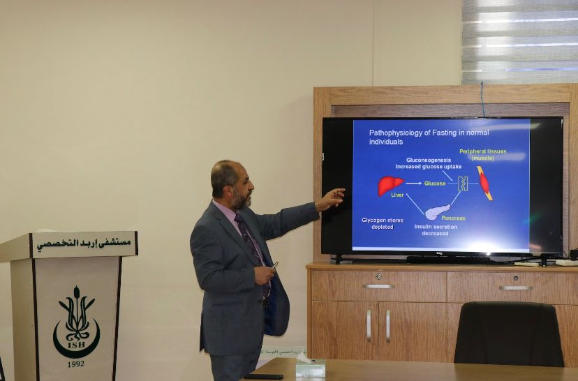 عمون - في اطار المسؤولية الاجتماعية وخدمة المجتمع المحلي ، القى استشاري الطب الباطني والغدد الصماء والسكري الدكتور فوازات الشناق محاضرة توعية حول" صيام مرض السكري" في مستشفى اربد التخصصي.