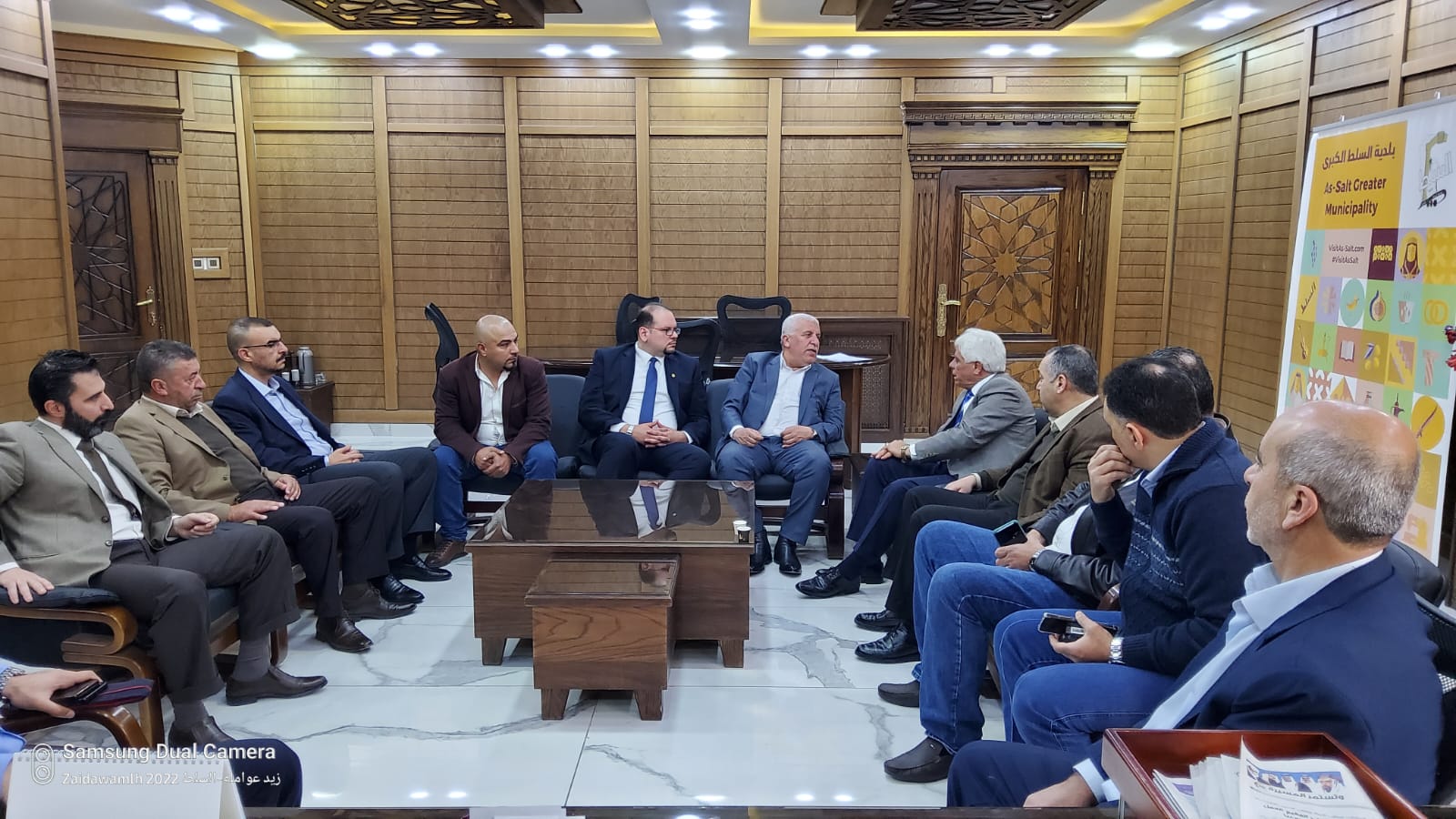 عمون - من زيد عواملة - زار وفد من إدارة نادي السلط الرياضي بلدية السلط الكبرى وكان في استقبالهم رئيس البلدية المهندس محمد الحياري. |