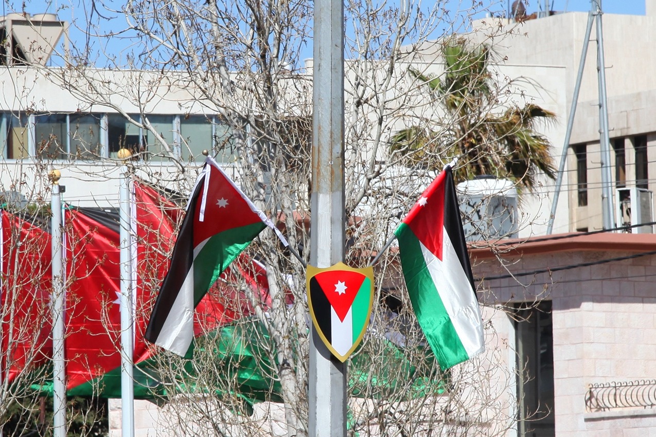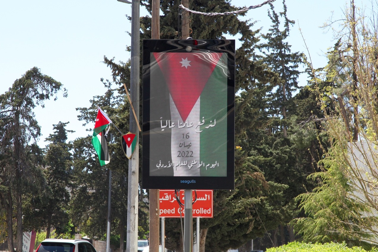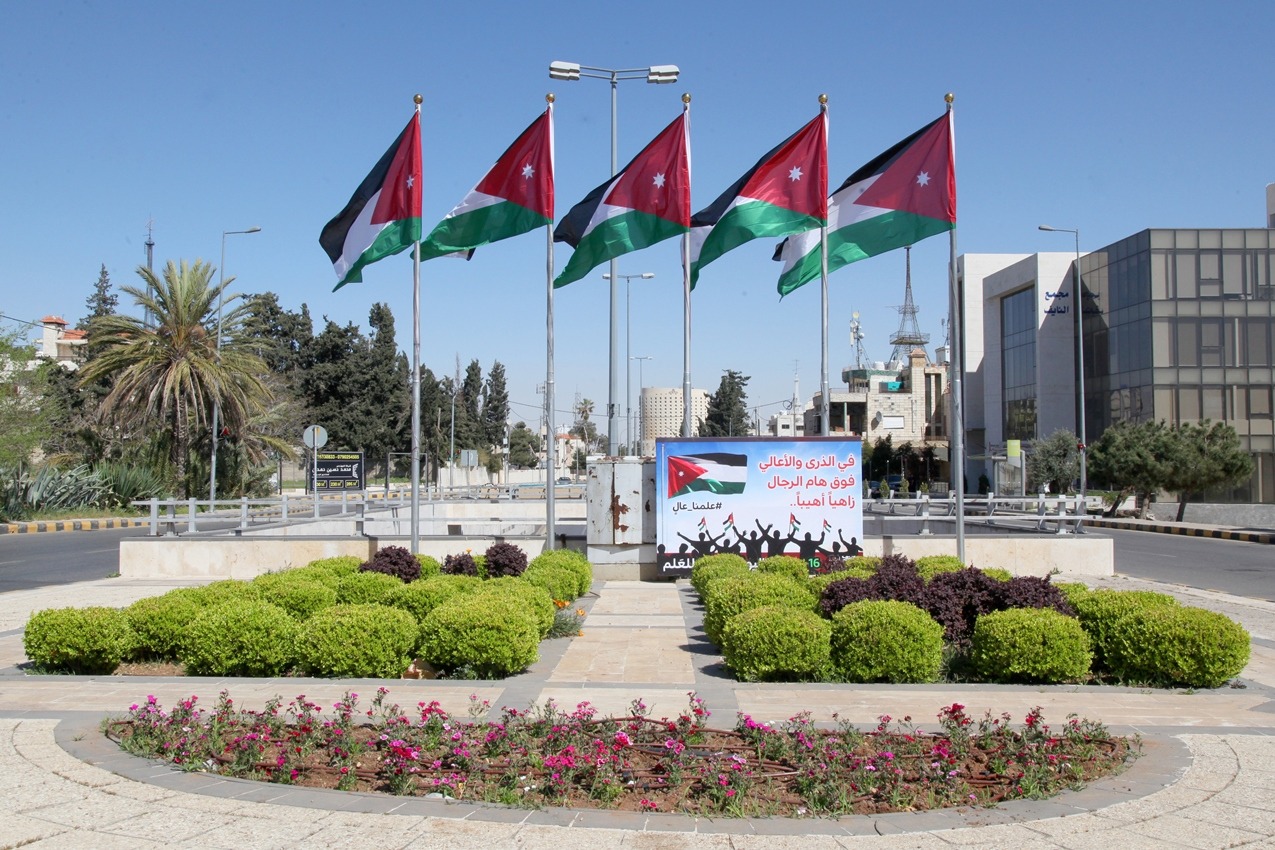 عمون - تقوم امانة عمان الكبرى بمناسبة اليوم الوطني للعلم الأردني الذي يحتفى به يوم السبت 16 نيسان، برفع الاعلام على امتداد شوارع العاصمة والتقاطعات المرورية. |