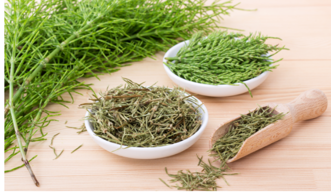 تشير الأبحاث إلى أن عشبة ذيل الحصان قد تفيد شعرك أيضًا، على الأرجح بفضل محتوى السيليكون ومضادات الأكسدة، فأولاً، تساعد مضادات الأكسدة في تقليل الالتهاب الدقيق وتقادم ألياف الشعر التي تسببها الجذور الحرة، ثانيًا، يؤدي ارتفاع نسبة السيليكون في ألياف الشعر إلى انخفاض معدل تساقط الشعر، فضلاً عن زيادة السطوع.