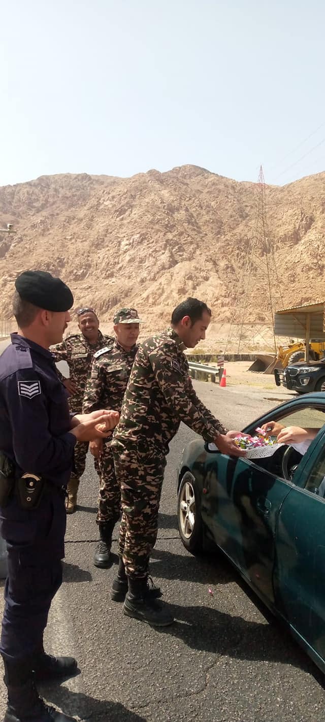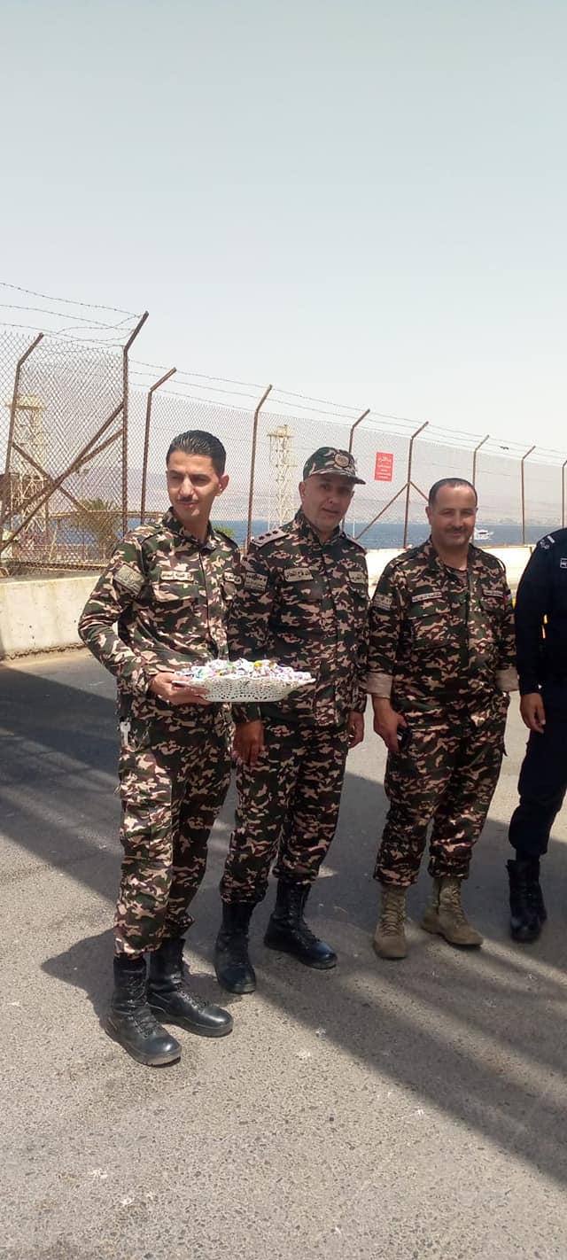 عمون - ابتهاجًا وإحتفاءً بعيد الفطر السعيد وزعت كوادر دوريات مكافحة التهريب في جمرك العقبة الحلوى على المسافرين والزوار لمدينة العقبة. |