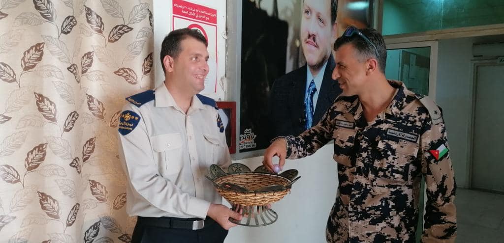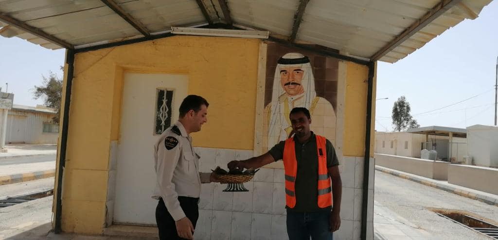وقال عقيد جمارك حسين عبيدات مدير جمرك الكرامة إنه وانطلاقًا من الواجب الإنساني والاجتماعي، وبناءً على توجيهات مدير عام الجمارك قام موظفو جمرك الكرامة منذ ساعات الصباح بتوزيع بطاقات التهنئة والحلوى وتقديم التهاني والتبريك للمواطنين والمسافرين وجميع العاملين في المركز الجمركي الحدودي بمناسبة حلول عيد الفطر السعيد.