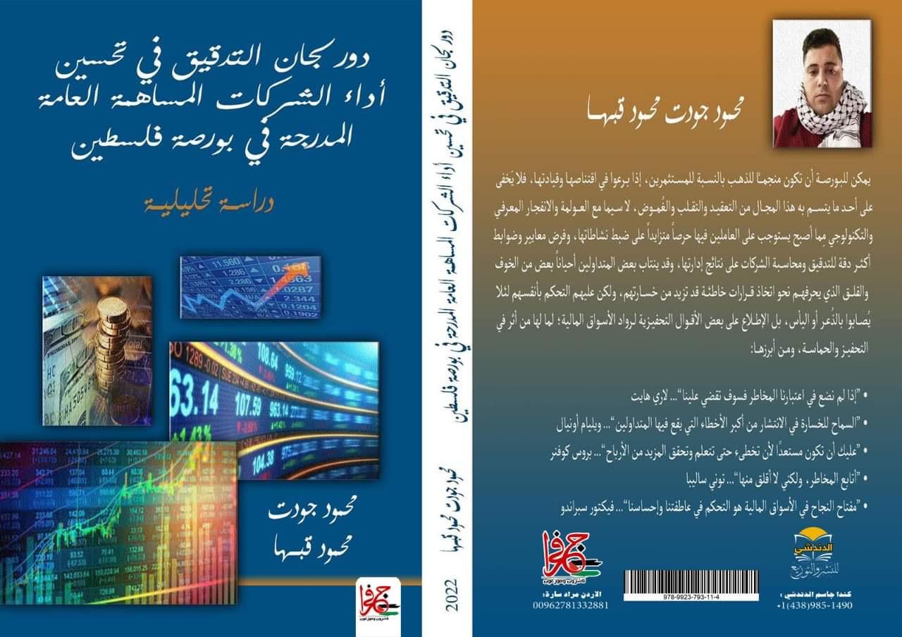 عمون - صدر عن دار جفرا و الدندوشي كتاب بعنوان "دور لجان التدقيق في تحسين أداء الشركات المساهمة العامة المُدرجة في بورصة فلسطين- دراسة تحليلية للباحث "محمود جودت محمود قبها".