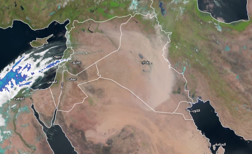 عمون - قال طقس العرب إن صور فضائية مباشرة أوضحت أن مساحة نحو 300 ألف كم مُربع من مساحة العراق تُغطيها موجة غُبارية كثيفة وواسعة وسط شبه إنعدام في مدى الرؤية الأفقية في مناطق تأثيرها.