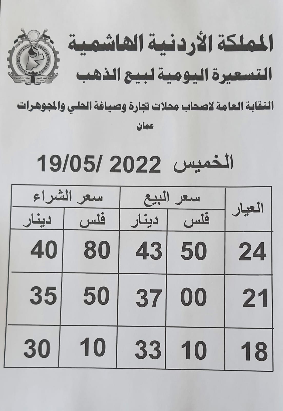 اسعار الذهب في الأردن الخميس19-05-2022 11:07 AM