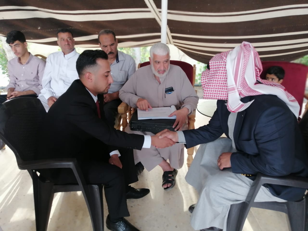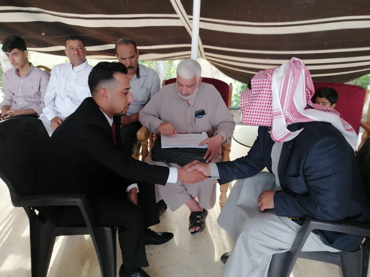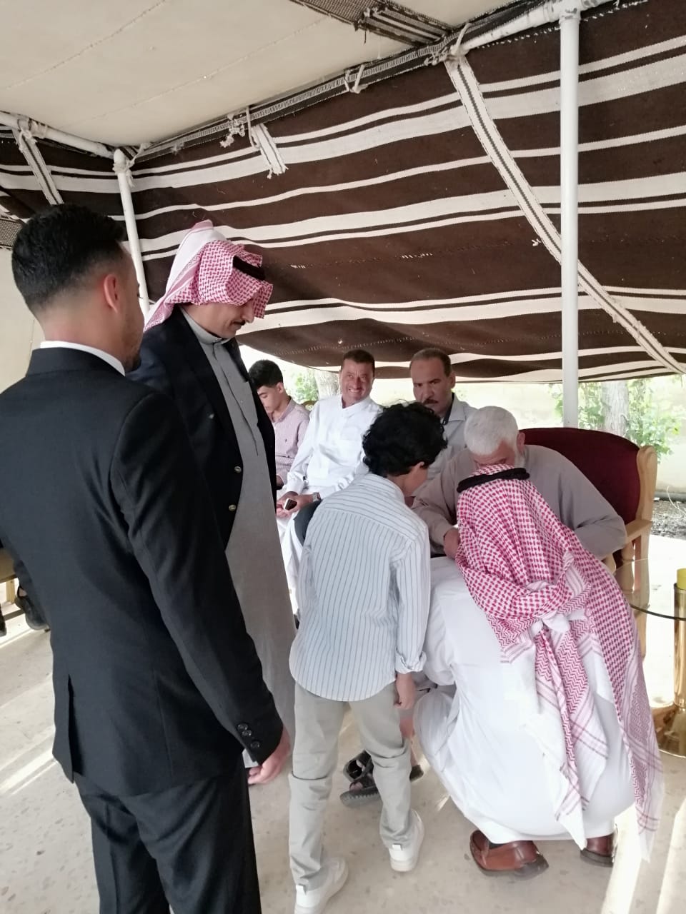 عمون - تم مساء اليوم الجمعة، عقد قران السيد هيثم فارس ذوقان الحسحس شقيق الزميل خالد فارس الحسحس على صاحبة الصون والعفاف كريمة الشيخ جلاد عطالله سايج الهليبان في قصر شيخ قبيلة العلي في قرية ام السرب في محافظة المفرق الشيخ عطالله سايج جلاد الهليبان وذلك بحضور جمع غفير من وجهاء القبيله وأبناءها حيث تقدم الجاهه الكريمه فضيلة الحاج العميد المتقاعد عوض قطيش معلى العلي أبو إبراهيم. |