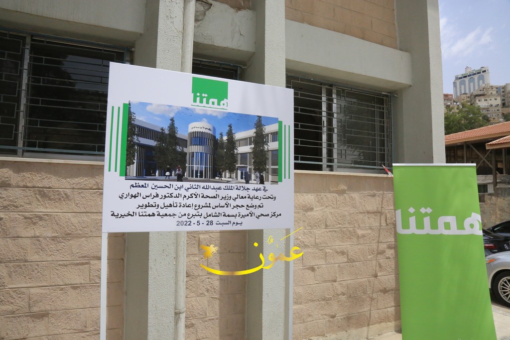 عمون - تحت رعاية وزير الصحّة الدكتور فراس الهواري؛ أقيم اليوم السبت حفل وضع حجر الأساس لمشروع تطوير وإعادة تأهيل مركز صحي الأميرة بسمة الشامل الذي تقوم عليه مبادرة "همتنا"، كما تم على هامش الحفل عقد مؤتمر صحفي لإطلاق حملة جمع تبرعات لدعم مشاريع "همتنا" والمساهمة في إعادة تأهيل مراكز صحية ومستشفيات حكومية أخرى في المملكة.