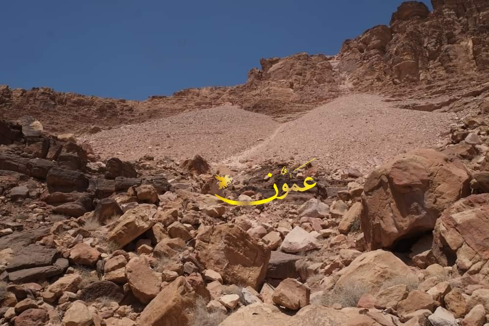 وعلى مدى مسارنا بقلب الوادي كان هناك الكثير من خام النحاس ذو اللون التركوازي بين الصخور، وفي الجهة المقابلة واجهتنا جبال كاملة تظهر منها تدرجات الأخضر وتزداد كثافة كلما تعمقنا أكثر، أما السير عليها وانعكاس حرارتها الذي يزيد من درجات الصعوبة حتى وصلنا بعد عددة استراحات إلى النقطة التي منها سوف نبدأ بصعود الجبل نحو كهف أم العمد 910م من مستوى 680م، والذي أصبح موقعه محاذي لمشروع شق طريق يربط ما بين الشوبك ووادي عربة، وهذه المرحلة لم تكن بالأمر السهل ففي وقت الظهيرة كان الصعود على حجارة هشة، قد تنزلق على حين غرة.