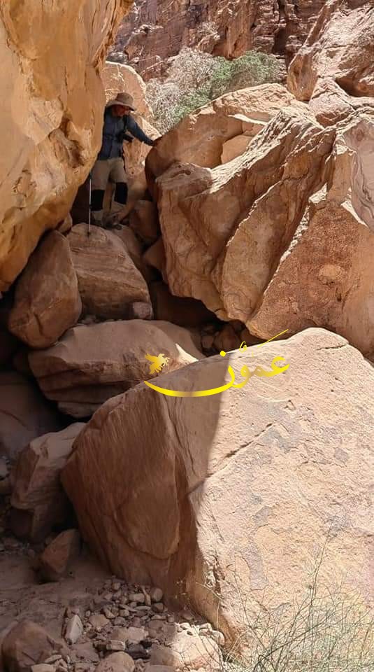 وصلنا لمدخل وادي أم الغربان المحاذي لمغارة أم العمد من الجهة الجنوبية، حيث كانت خطتنا أن نسير ونستكشف ما فيه من تنوع فطري وجيولوجي كونه من الأماكن الغير مطروقة لتعدد مقاطعه وضيق مجراه بين الشوامخ وارتفاع حرارته صيفاً، بوادٍ مغلق محاط بالجبال ومجرى سيل وحيد شديد الخطورة شتاءاً، معتمدين على روح الفريق بتجاوز منحدراته المتتالية ومستدلين بمسيرنا بنباهة كشاف الطريق، وحنكة قائد المجموعة مع الأخذ بعين الاعتبار الحذر من مخاطر الطريق او من وجود الأفاعي التي تختبئ بين الصخور، وأكوام الشوك والمصنف متوسط الصعوبة.