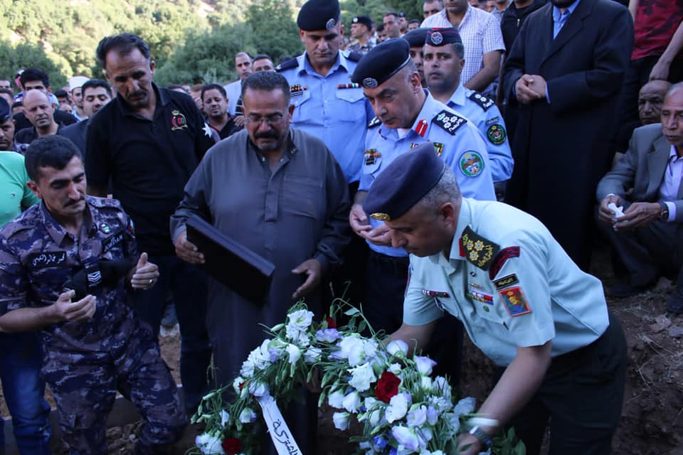 عمون - مندوبا عن مدير الامن العام اللواء الركن حسين محمد الحواتمة، شارك مساعد مدير الامن العام للقضائية العميد الدكتور محمد طبيشات وبحضور مدير الدفاع المدني العميد المهندس حاتم جابر وقائد امن إقليم الوسط العميد الدكتور علي الزعبي ومدير شرطة محافظة البلقاء العميد سفيان الربابعة بتشييع جثمان الشهيد الرقيب عدي محمد عبد المجيد الخرابشة من مرتب مديرية الدفاع المدني الى مثواه الأخير في مقبرة وادي الحور في محافظة البلقاء. |