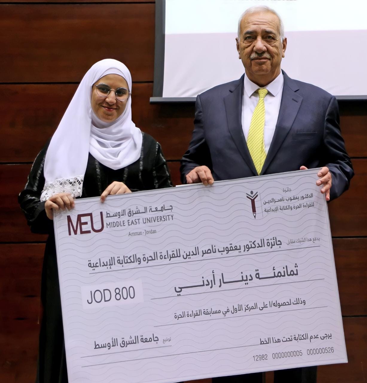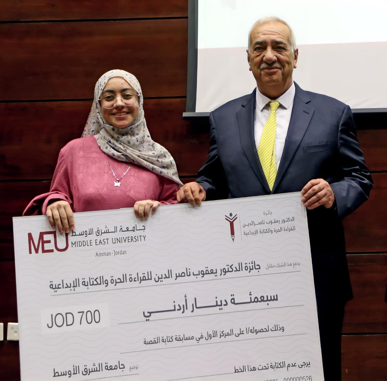 بدوره، قال رئيس لجنة الجائزة، عميد كلية الآداب والعلوم الدكتور أحمد موسى إن هذه الجائزة التي أطلقت بالتزامن مع الاحتفال باليوم العالمي للغة العربية الموافق للثامن عشر من كانون الأول، قامت من أجل البحث عن المتميزين في مجالات كتابة الـمقال، والقصَّة، والقراءَة، لتكريمهم، وتشجيعهم على مَزيِد من الإبداع، مضيفًا أن الجامعة اختارت الاستثمار في الإنسان، مؤمنةً بأن العلم بحر لا ساحل له، وبأن المعرفة قوة، وأن ذلك يساعدها في تحقيق رؤيتها المتمثلة في أن تكون جامعة جادة، وملتزمة، وساعية للتعلّم.
