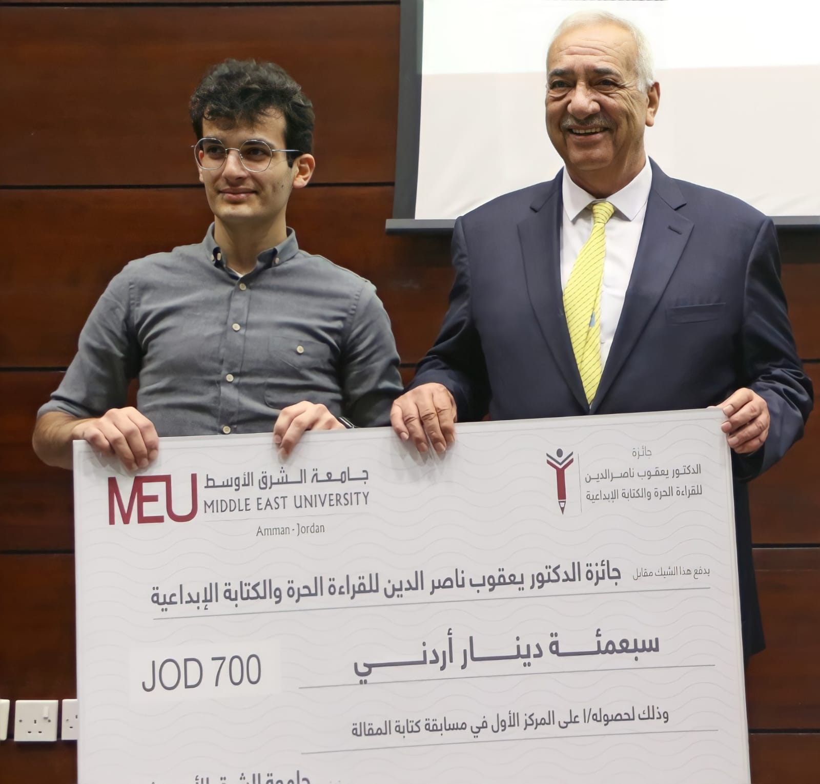 يُذكر أن جائزة (الدكتور يعقوب ناصر الدين للقراءة الحرة والكتابة الابداعية)، تمنحها جامعة الشرق الأوسط تكريمًا لجهود الدكتور يعقوب ناصر الدين في رعاية فئة الشباب ودعم ابداعاتهم، وتاكيدًا لإيمانه بدور مهارتيّ الثراء والكتابة في تنمية القدرات المعرفية والفكرية للانسان.
