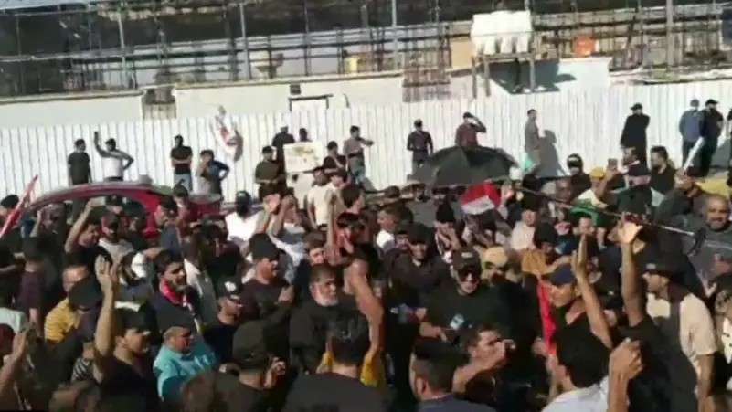 وفي وقت لاحق، عبر المتظاهرون جسر الجمهورية نحو المنطقة الخضراء في بغداد.