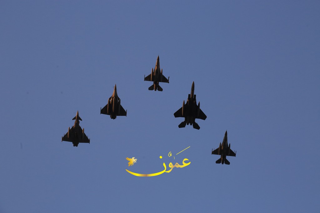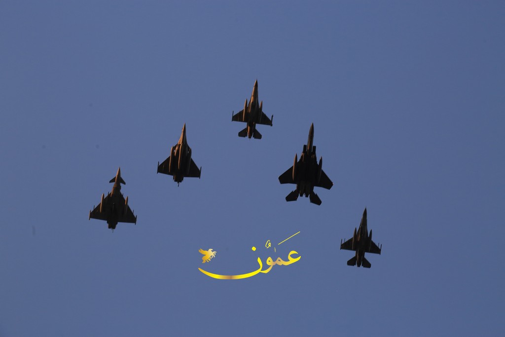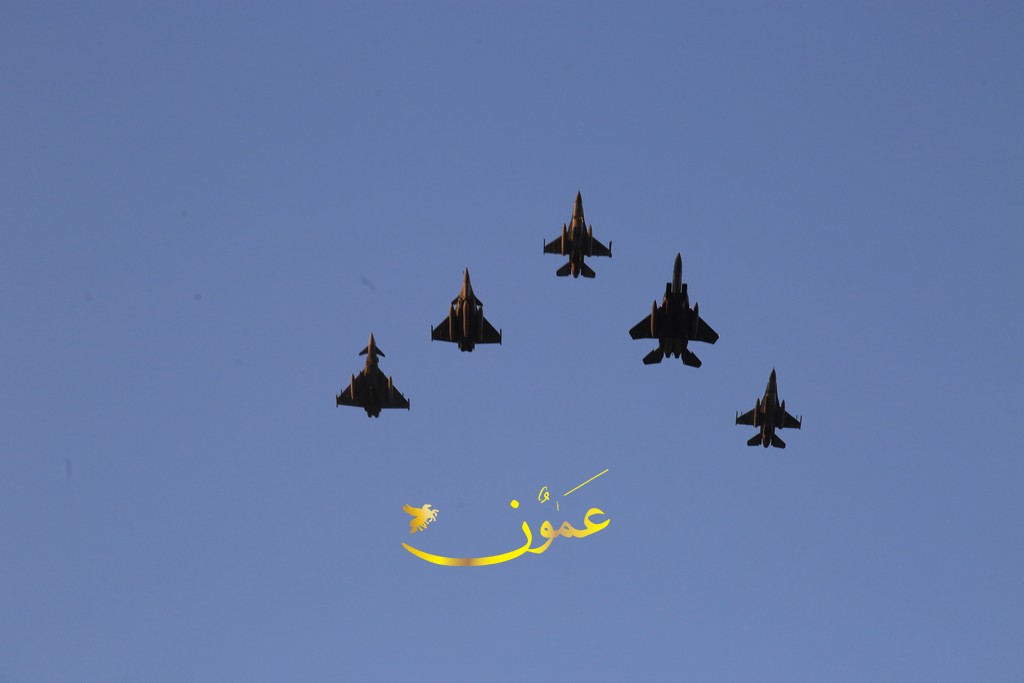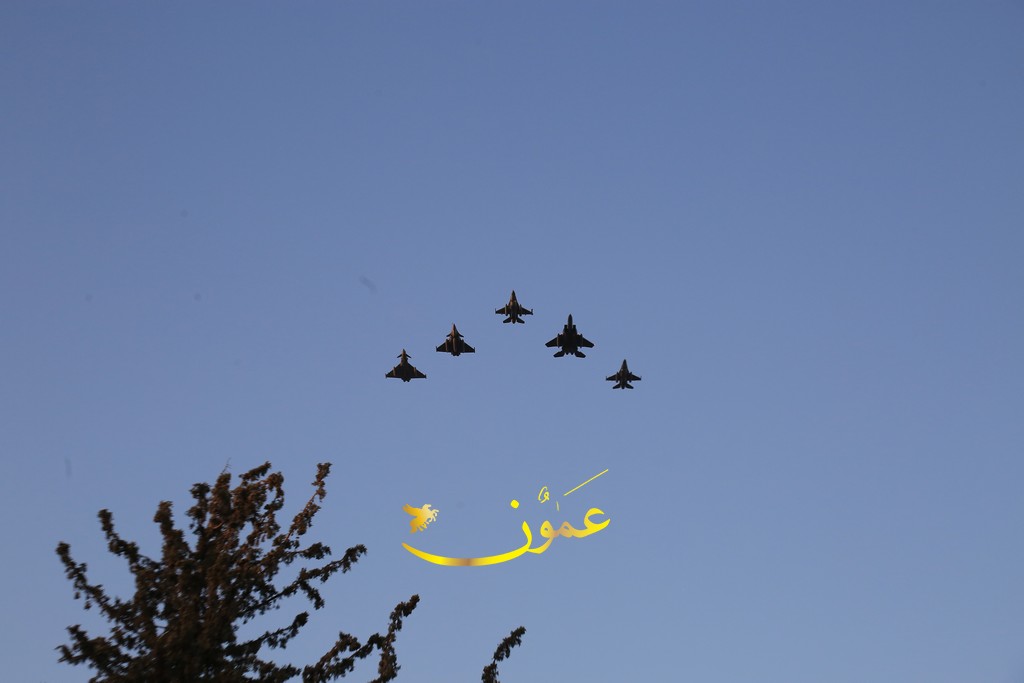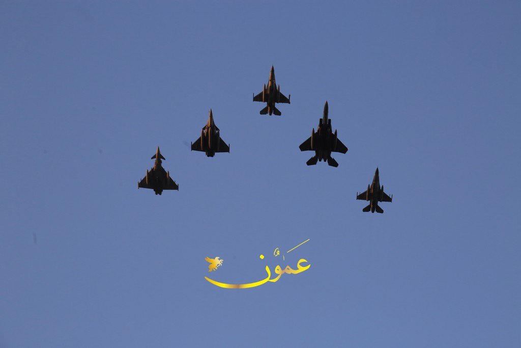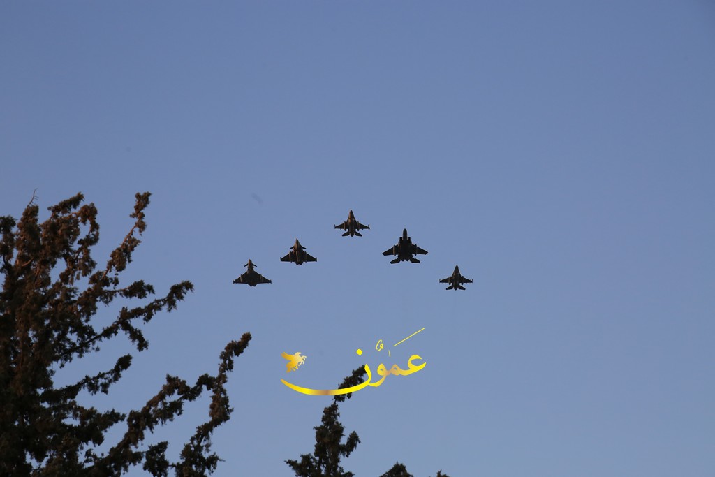 وستقود طائرة تابعة لسلاح الجو الملكي الأردني من طراز (إف-16) التشكيل الجوي، تليها طائرة تابعة للقوات الجوية الأمريكية من طراز (إف-15) وطائرة أخرى من طراز (رافال إيه إيه إي)، وسيكتمل التشكيل الخلفي بطائرة تابعة لسلاح الجو الملكي البريطاني من طراز (يوروفايتر تايفون) وطائرة إضافية تابعة لسلاح الجو الملكي الأردني من طراز (إف-16). تُظهر هذه الطائرات المقاتلة، المصممة لتحقيق التفوق الجوي والضربات الأرضية، قدرة تلك الدول وتبادل المعلومات والشراكة فيما بينها والتزامها بتحقيق الاستقرار والأمن على الصعيد الإقليمي.