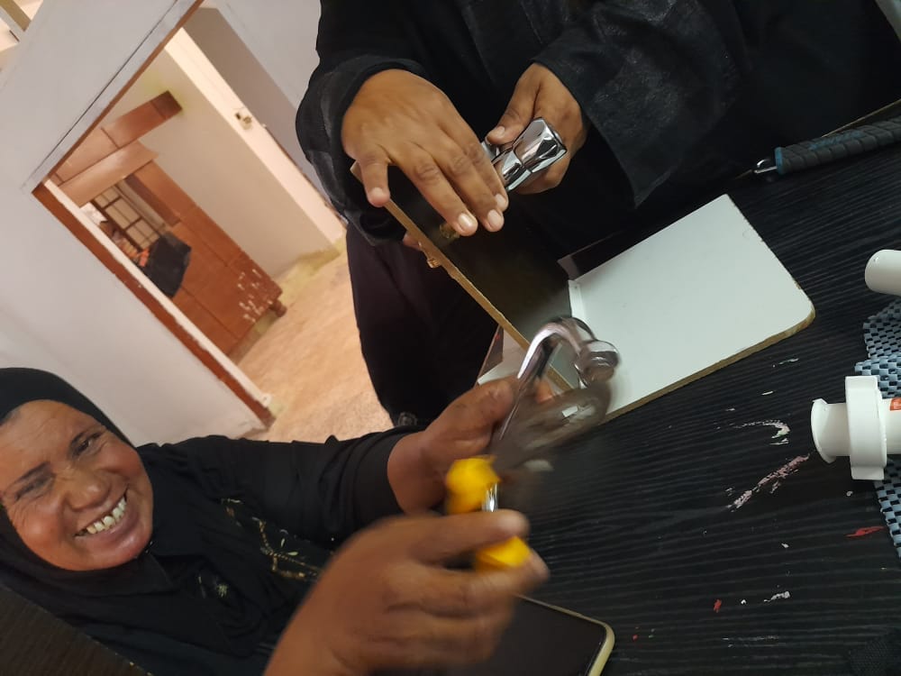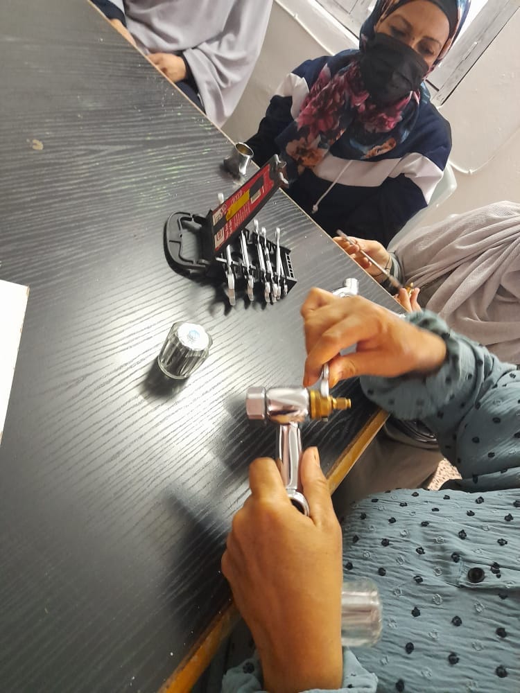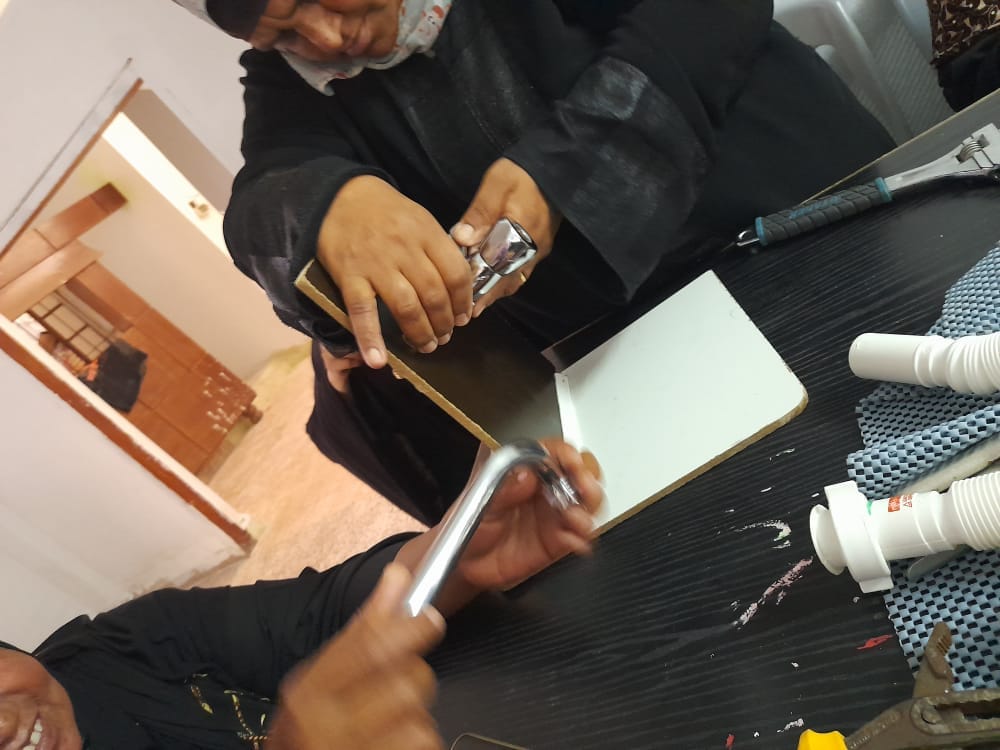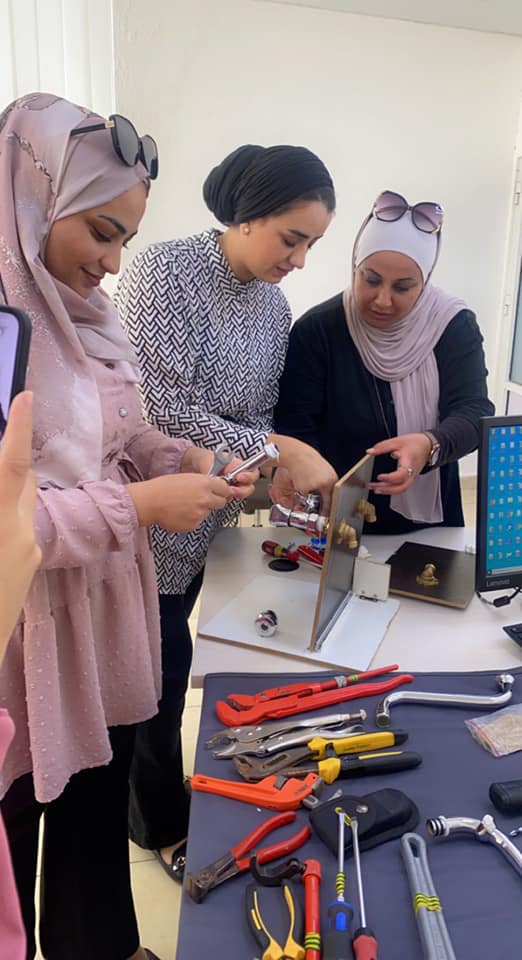 وعلى مدار ايام متتالية من هذا الاسبوع تم عقد دورة “السباكة” في محافظة السلط باشراف السباكة المدربة ايمان العبادي والسيدة تهاني الشطي وبمشاركة عشرون سيدة من المجتمع المحلي، اضافة الى عدد من موظفات قطاع المياه في الادارة تلقت فيه المتدربات المشاركات تدريبات على الادوات اللازم توفرها في المنازل لاستعمالها في أعمال السباكة ومهارت كشف حالات التسرب المائي في منازلهم وتعريفهن بأنواع الحنفيات وصيانتها وقطع توفير المياه وتنظيف مرافق الصرف الصحي للحد من فاقد المياه وخفض قيمة فاتورة المياه و العمل على تنظيف خزانات المياه لضمان تزويد مائي امن اضافة الى توزيع عدد من المواد التوعوية التي تسهم في رفع درجة الوعي المائي لدى المواطنين .