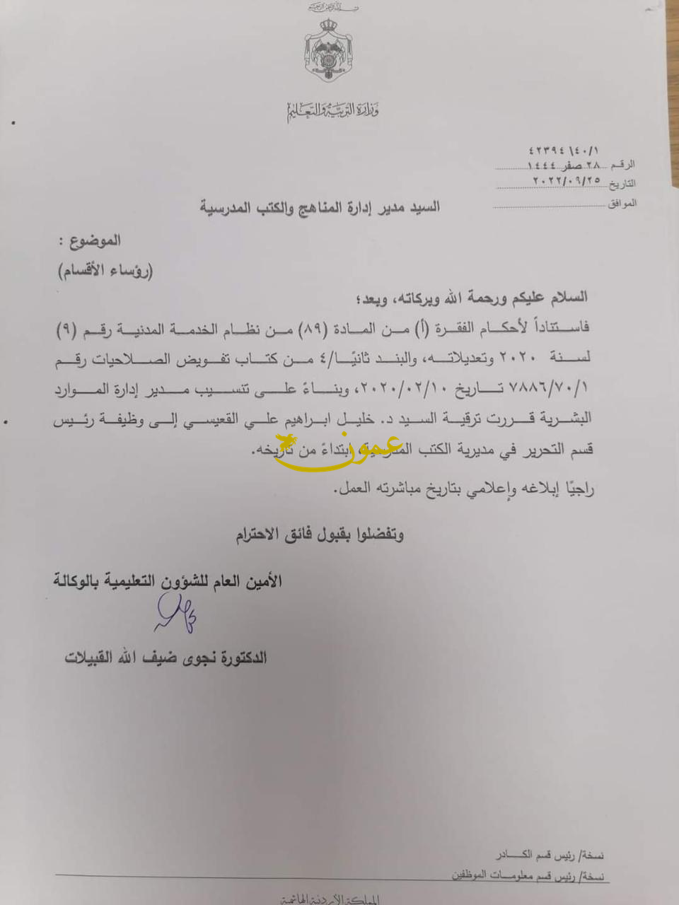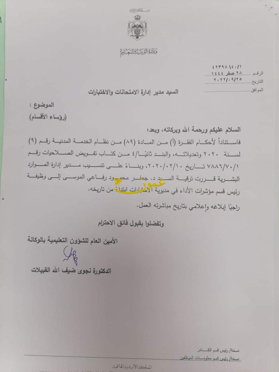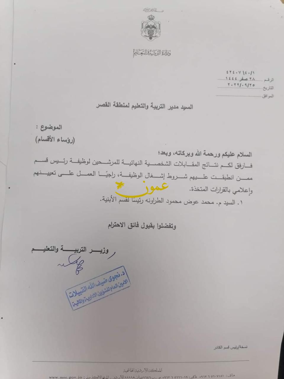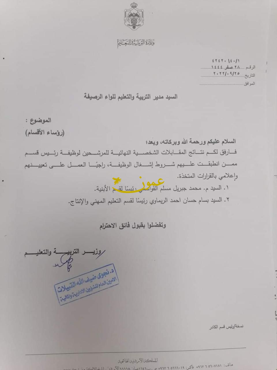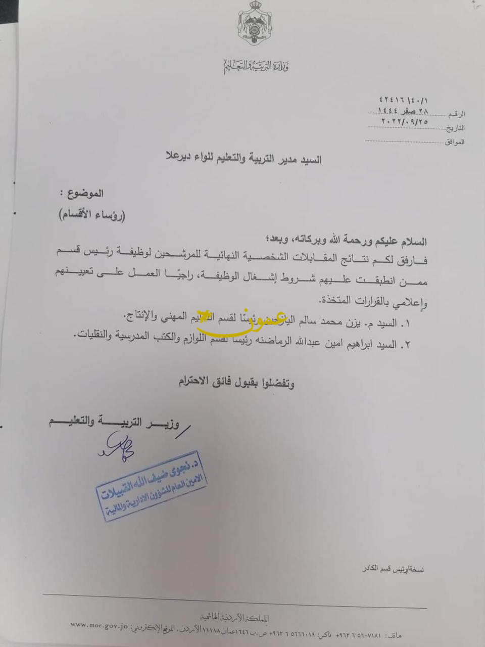 التربية تعلن نتائج المقابلات الشخصية لوظيفة رئيس قسم (أسماء)26-09-2022 04:30 PM