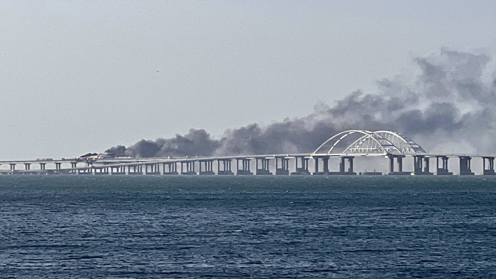 وتضرر جسر يربط بين روسيا وشبه جزيرة القرم، ويضم طريقا بريا ومسارا للقطارات، في انفجار قوي، مما أضر بطريق إمداد مهم للقوات الروسية في أوكرانيا.