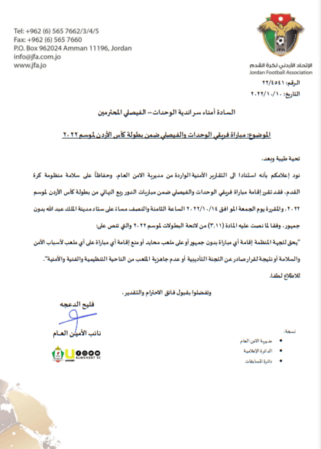 الوحدات يعلق على قرار الاتحاد: لم نستشار والجماهير فاكهة الكرة10-10-2022 06:43 PM